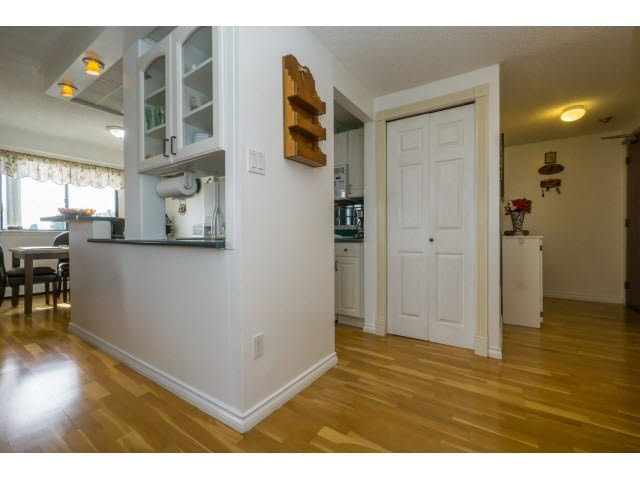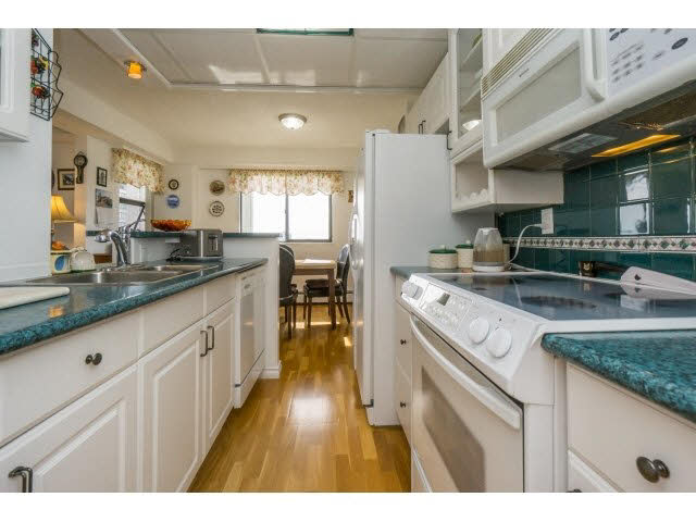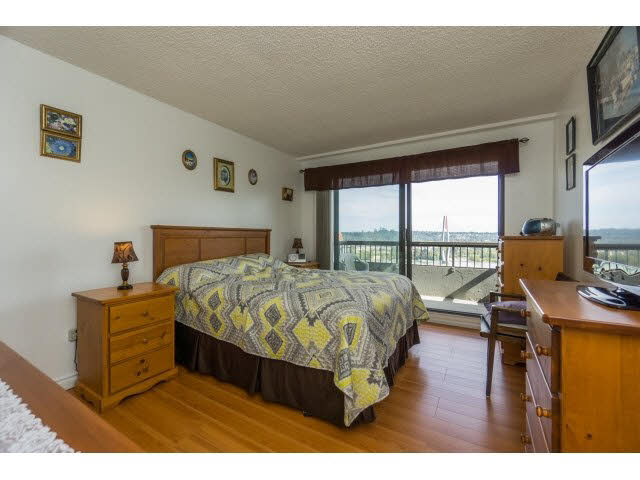 The views from this two bedroom, two bath penthouse are simply spectactular! Kitchen features white cabinetry, double sinks and is open concept to living room and dining areas. Lovely hardwood floors. Master bedroom has its own deck and four piece ensuite. Insuite laundry as well. Close to shopping, transit and skytrain. Two parking stalls and a locker. The suite and building are well maintained. Building has a pool and gym. 1 dog or cat allowed but sorry no rentals allowed.