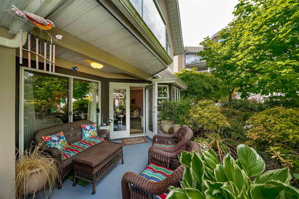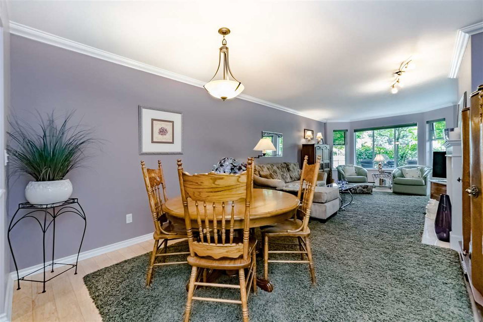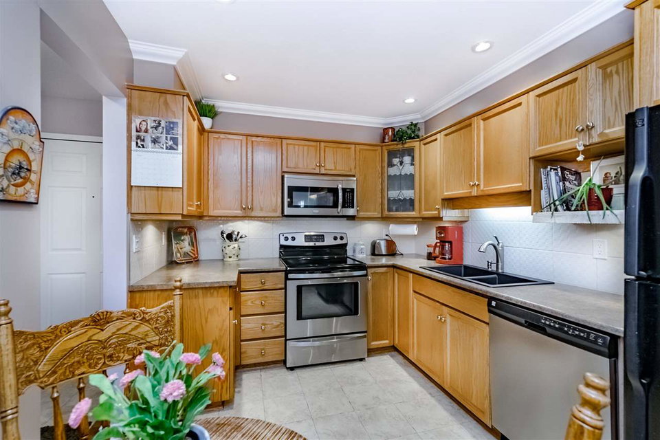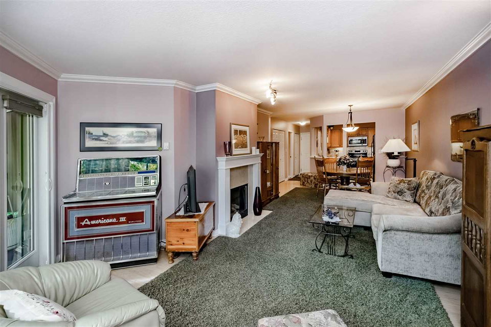 This 1 bedroom stands out in size at 902 sq ft – insuite laundry too! Beautiful patio surrounded by stunning garden in tranquil setting. Best location in the building – come & go through patio door & just steps to parking. Open spacious living /dining areas w/ laminate floors & gas fireplace. Large master – patio access, 4 pc bathroom & tons of closet space. Nicely updated kitchen & bathroom. Plenty of storage plus storage locker. 1 parking stall, visitor/street parking, 2 dogs/cats welcome. Excellent building (58 units) that is well run & maintained. No rentals, 19+ age restriction. Steps to bus stop & Glenbrook Ravine Park, short walk to skytrain, Canada Games Pool, Sapperton Landing Park & all of Sapperton’s shops & restaurants.