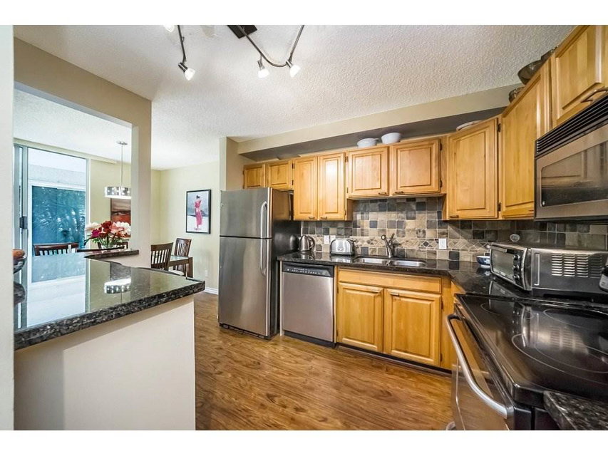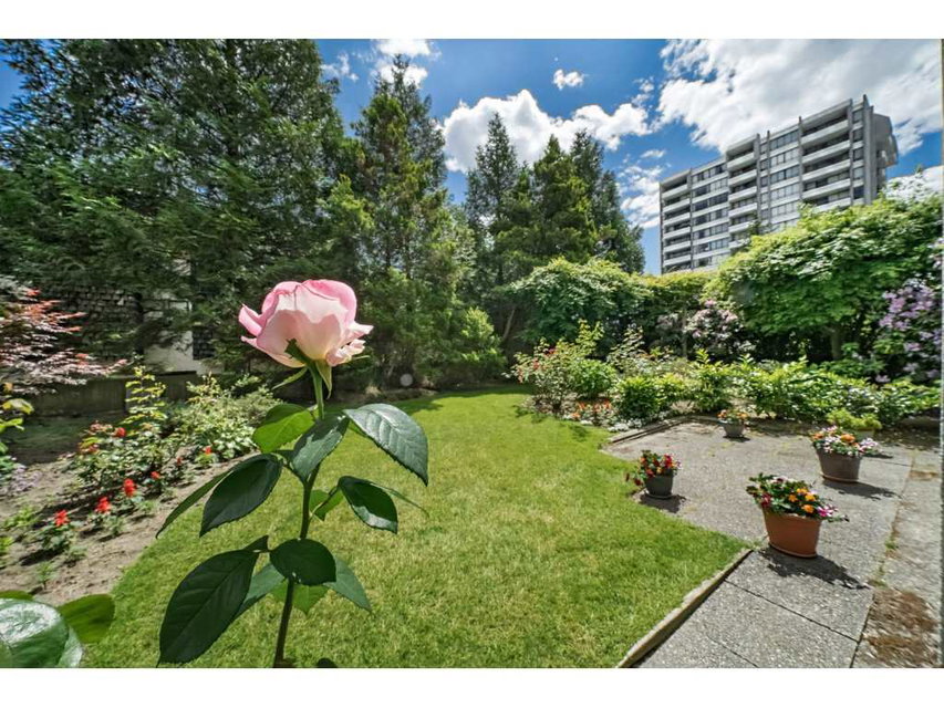 Located on the quiet and private side of this well cared for building. 993 sq ft plus 144 sq ft in 2 solariums for additional living space. This ground floor corner suite features high quality laminate flooring throughout. Upgrades to kitchen include granite counters and stainless steel appliances. Off the living room is a solarium that leads out to your own private patio area. New vanity, tub, flooring in bath. Both bedrooms are spacious. Insuite laundry, one parking, one locker and live in caretaker. Sorry no pets or BBQ’s. One rental allowed and 19+ age restriction. On the plus side, great uptown location close to shopping, transit, parks and restaurants.