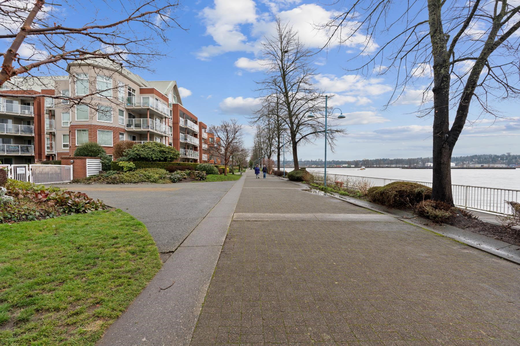 Experience refined waterfront living in a bright and well designed 2 bedroom and 2 bath condo. This home features an open concept living and dining area, a functional kitchen with ample storage, and new stainless steel appliances. The spacious primary bedroom includes a walk-in closet and 4 piece ensuite, while the second bedroom is perfect for a guest or home office. This 1268 sq. ft. home offers 2 patios, 2 lockers, and 1 parking. 2 pets allowed. Ideally located just steps from the Boardwalk, shops, entertainment, and transit. This home delivers a sophisticated lifestyle in one of the Quay’s most desirable settings. OPEN HOUSE SUNDAY MARCH 15, 12 TO 2 PM