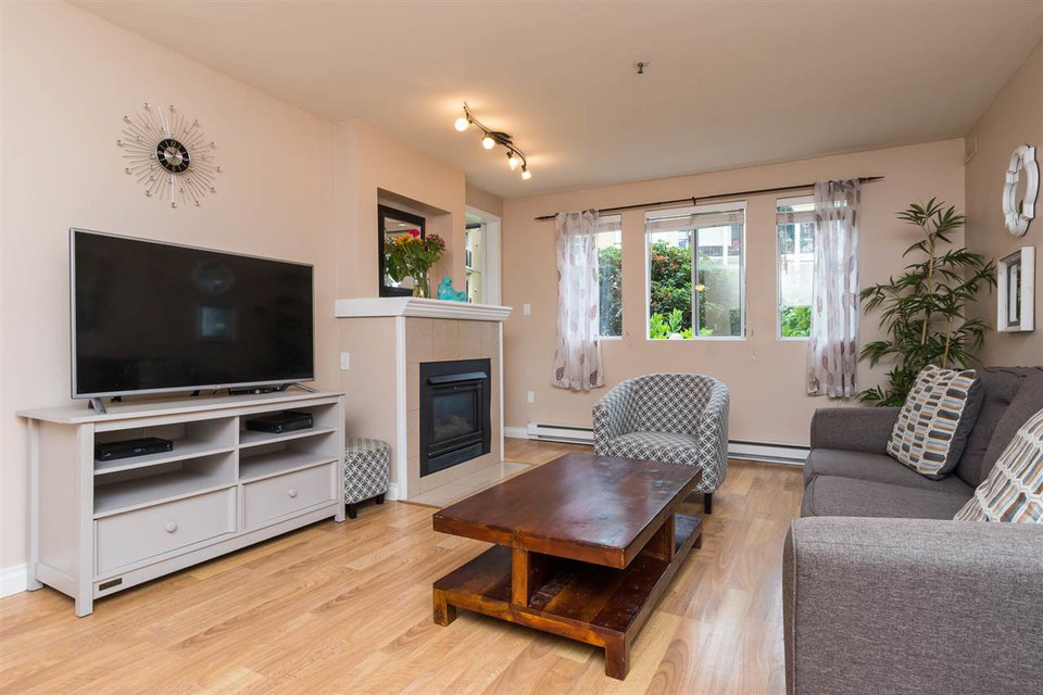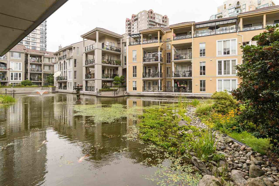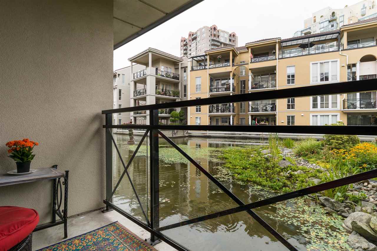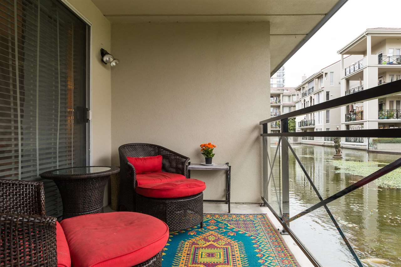 2 bedroom, 2 bathroom at The Lido in the most peaceful setting. Surrounded by beautiful serene lagoon & greenery – feels like you’re on vacation! Townhouse style entry w/ your own front door off the secure private courtyard, where the friendly neighbours gather. Spacious living rm w/ gas fireplace & loads of natural light. East facing covered balcony right on the lagoon. Sleek kitchen w/ wood counters, S/S appliances & eating area. Huge master has 4 pc ensuite bath & access to balcony. Gorgeous laminate floors & tile. New washer/dryer. 1 parking, locker, visitor parking, bike storage & pet friendly (2). Steps to the boardwalk, dog park, bus stop & quick walk to skytrain, River Market, pubs, restaurants & grocery stores.