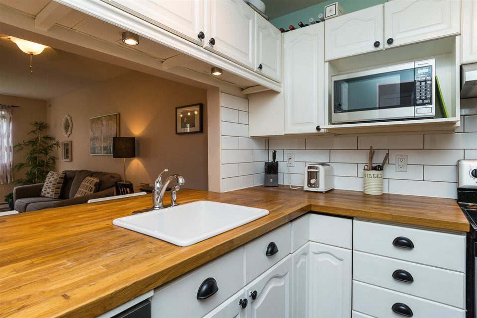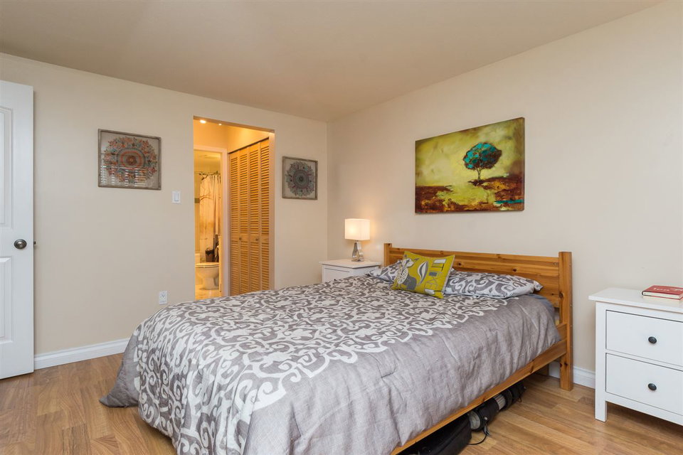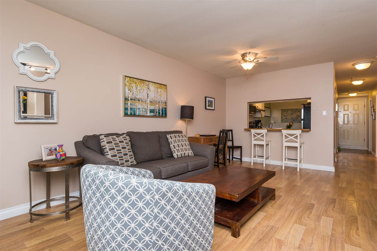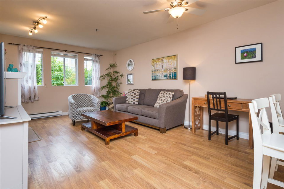 2 bedroom, 2 bathroom at The Lido in the most peaceful setting. Surrounded by beautiful serene lagoon & greenery – feels like you’re on vacation! Townhouse style entry w/ your own front door off the secure private courtyard, where the friendly neighbours gather. Spacious living rm w/ gas fireplace & loads of natural light. East facing covered balcony right on the lagoon. Sleek kitchen w/ wood counters, S/S appliances & eating area. Huge master has 4 pc ensuite bath & access to balcony. Gorgeous laminate floors & tile. New washer/dryer. 1 parking, locker, visitor parking, bike storage & pet friendly (2). Steps to the boardwalk, dog park, bus stop & quick walk to skytrain, River Market, pubs, restaurants & grocery stores.