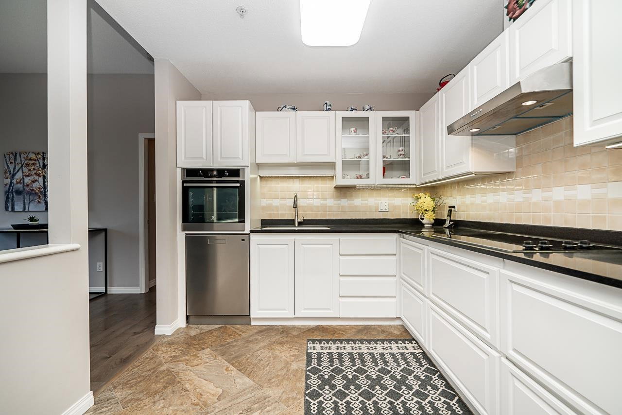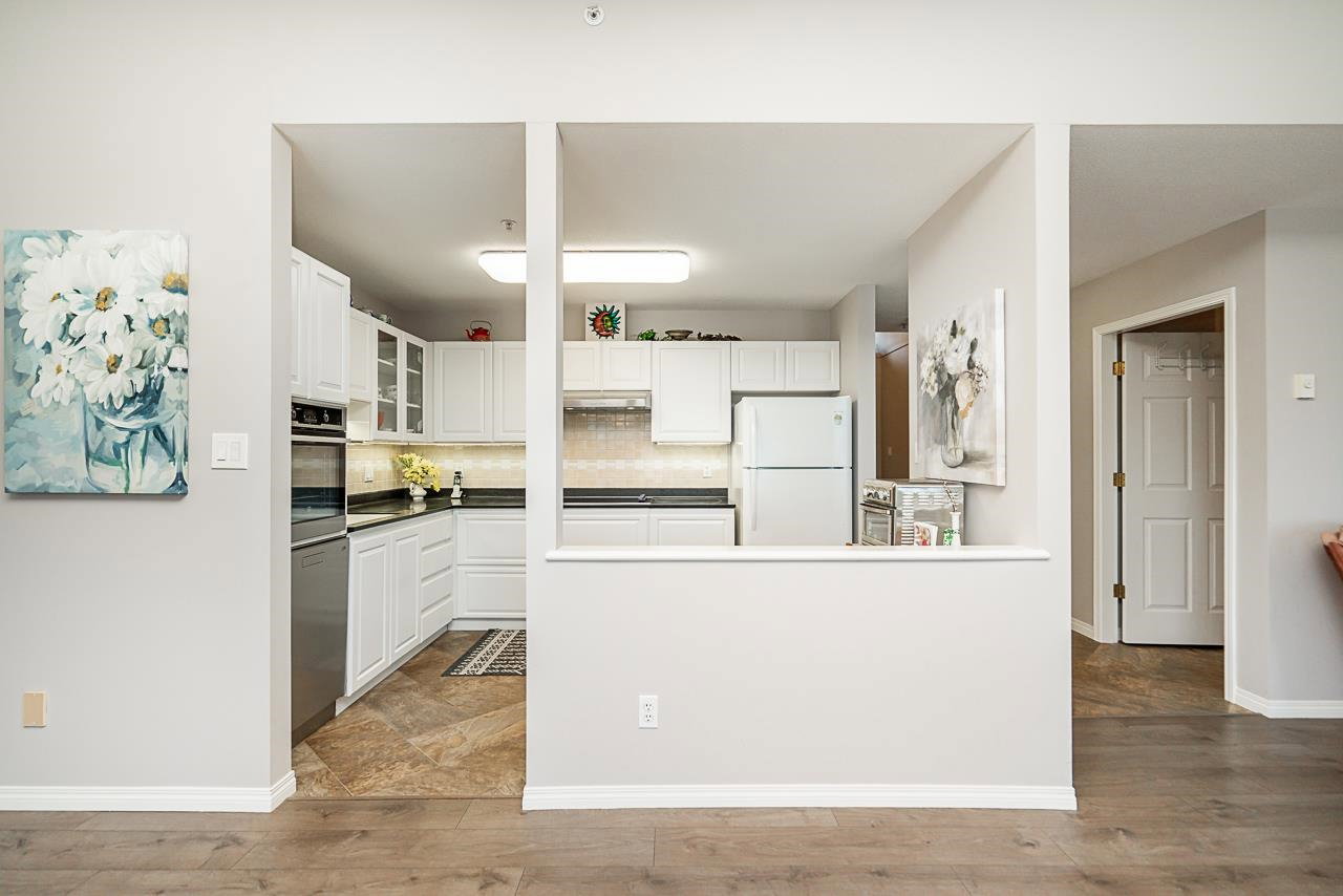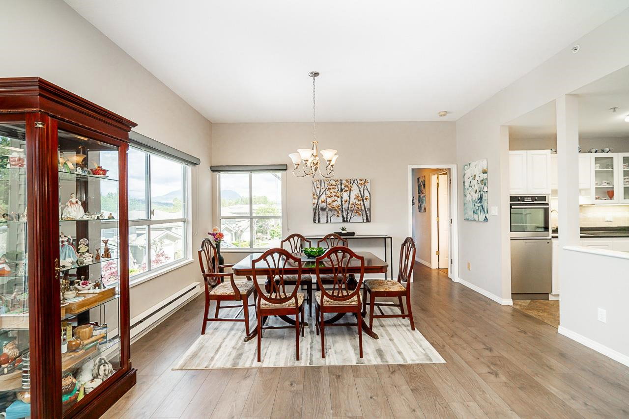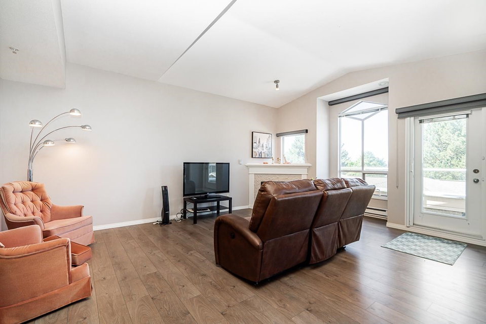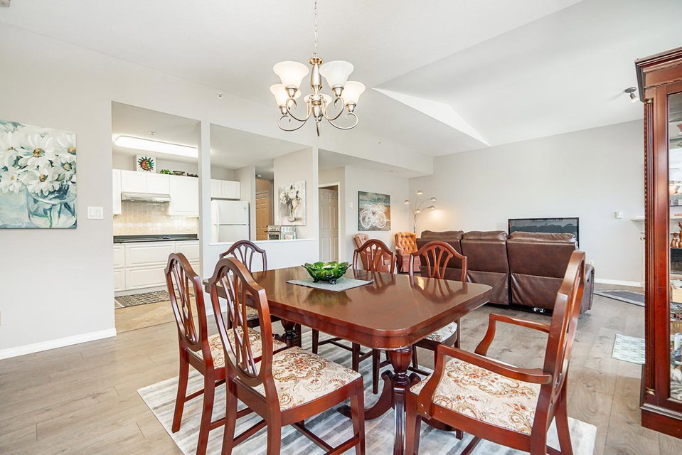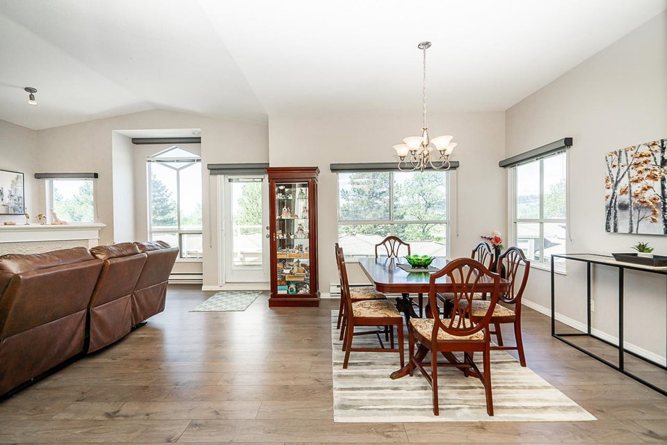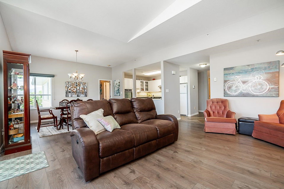 All your living across 1 level, Come and see this meticulously maintained spacious two bedroom home in the Summit. As you walk in the front door, you will see how open and bright this layout is, w vaulted ceiling in the entrance & living areas. Cozy up in front of your gas fireplace, or entertain your friends & family in your large dining space. The views from your deck can be breathtaking. Many updates have been done throughout this home, including the stunning kitchen upgrade w attractive counters, beautiful white cabinetry, wall oven, flat cook top and undermount lighting. The exquisite engineered flooring throughout is durable and modern. Enjoy your upgraded closet organizers & new window coverings. There is a single car garage and additional parking. This is a rare find!