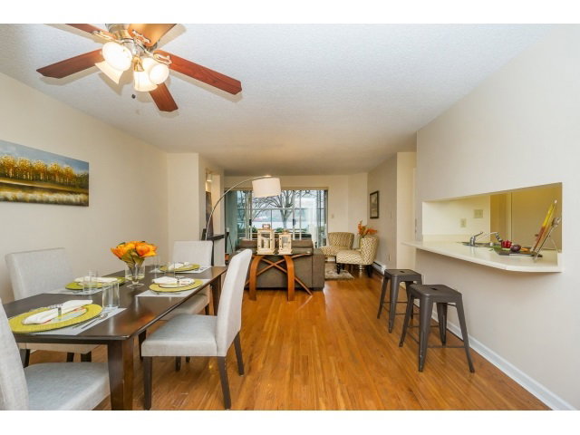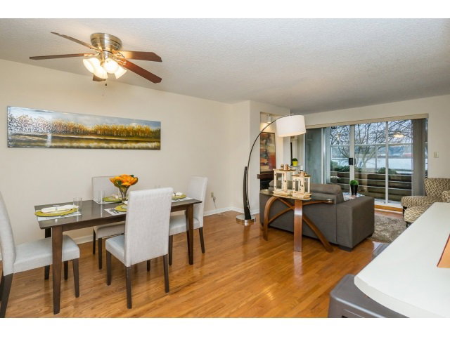 Waterfront living at the Quay! This lovely home features two bedrooms, insuite laundry, and hardwood floors in living room, dining room and hallway. Front and rear patios make a lovely place to enjoy, and watch the world go by. Conveniently located just steps to the skytrain, transit, market, and entertainment district. Two pets are welcome. Storage unit just outside your front door. Perfect place to move in and call home!