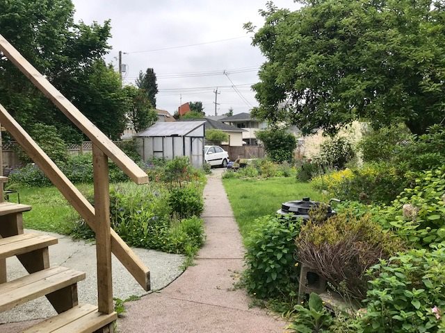 Moody Park 1929 ~ 3 level, 4 bdrm, 2 bath character home on big NR-1 (50.3 x 130 ft) level lot with back lane. Located in a family friendly neighborhood just a short level walk to schools, park, bus & shopping. Bright rooms, big windows, original fir floors, built-in leaded glass cabinetry in dining room, W/B fireplace in livingroom . Entire top floor is the master suite…unique bedroom and newer full ensuite bathroom with both tub and shower. 6′ 6′ Bsmt with separate entry, laundry & 4th bedroom, awaits your ideas. Super potential here- a diamond in the rough!