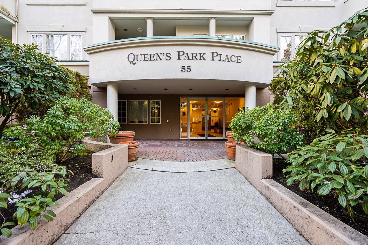 Exclusively built for those who are 55 years plus. This garden level corner unit is probably in the best location in a well looked after building. The 1 bedroom and den homes do not come on to the market very often. Being a corner unit, lots of windows allowing for plenty of natural light. Balcony off dining room and private patio off the living room, looking out to a beautiful treed area. This lovely condo has been updated with a new kitchen and high quality flooring. Insuite laundry. Gas fireplace in LR. Amenities include a GUEST SUITE, workshop, greenhouse, several small reading rooms & lounge. Conveniently situated close to transit, Queens Park Hospital, shopping and short walk to Queens Park. One parking stall and one storage locker. One pet allowed. OPEN HOUSE MARCH 19, 12 – 2.
