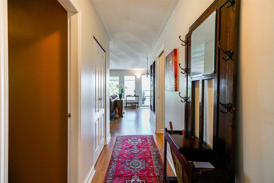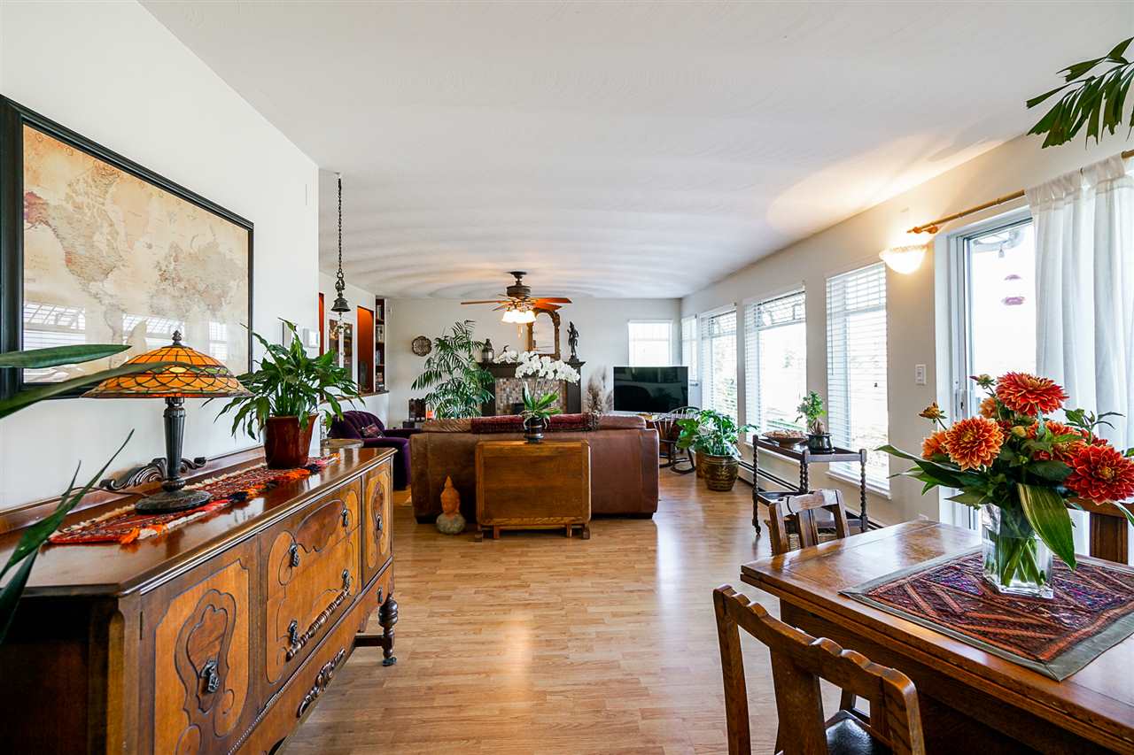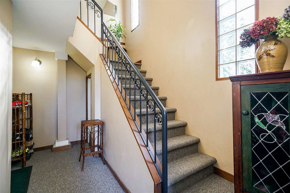 Distinct and unique best describe this home. A townhouse/duplex home in the heart of historic Sapperton. Street Level entrance leads up to the main floor living area. Two large bedrooms. Master has a gorgeous spa-like ensuite. Beautiful five piece guest bath. Living room and dining area have quality laminate flooring and a gas fireplace. But it’s the four hundred square foot deck that really grabs you, with extraordinary views of the mountains, the might Fraser River, cityscape, Port Mann Bridge. The grounds surrounding this home are absolutely gorgeous : Hot house, ‘secret garden’ in the back, vegetables along the side. Single garage, plus shop, office area. Close to shopping, transit + skytrain. Bonus: No maintenance fees.