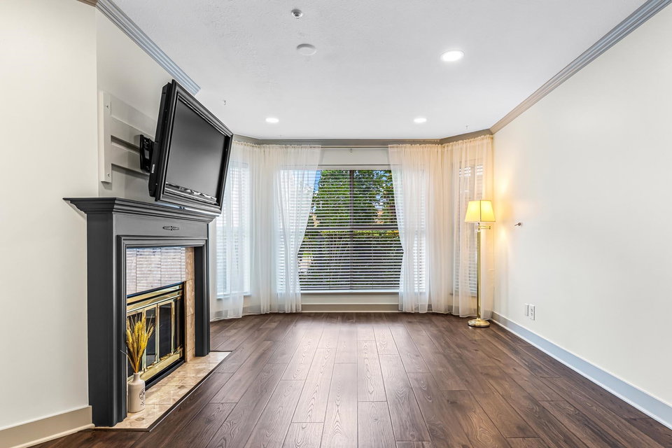 This is a great suite in a great quiet location. This bright and sunny condo features two large bedrooms and two full baths. Pot lights and crown mouldings throughout. Gas fireplace in living room. Private patio area. Laundry room with newer appliances. Very well cared for. EV and bike room are available. Roof is new as is the exterior paint. One parking and one locker. Two pets are welcome. OPEN HOUSE OCTOBER 4, 12 TO 2 PM.