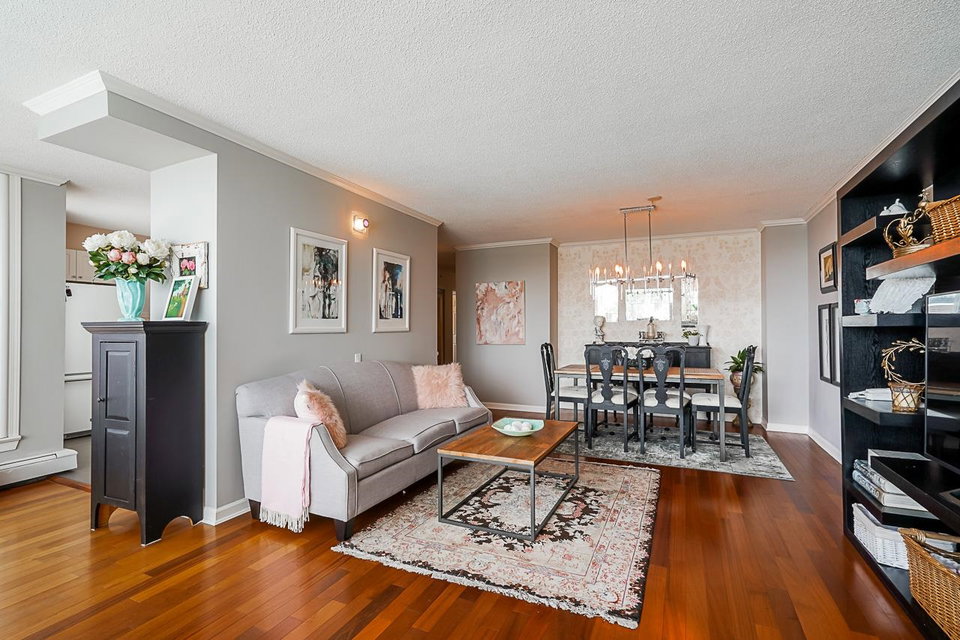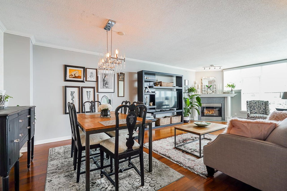 Nearly 1400 sq ft + incredible 293 sq ft private deck! The million dollar views are amazing from this 2 bedrm, 2 bathrm corner unit w/ insuite laundry. Owners have taken excellent care of this home. Stylish kitchen & appliances. Large living rm has gas fireplace. Main bedroom includes nook/office space, 2 closets including 7’x 7′ walk-in closet & reno’ed ensuite bathroom. Huge windows allow plenty of natural light. Lots of updates including engineered hardwood & tile floors. Strata fee includes heat, gas & hot water. 2 parking stalls, locker, visitor parking, 2 dogs/cats allowed (any size). Resort style amenities at Odyssey Towers: indoor pool, hot tub, sauna, gym, caretaker, workshop, guest suite, games rm, party rm, car wash station, bike & tire storage.