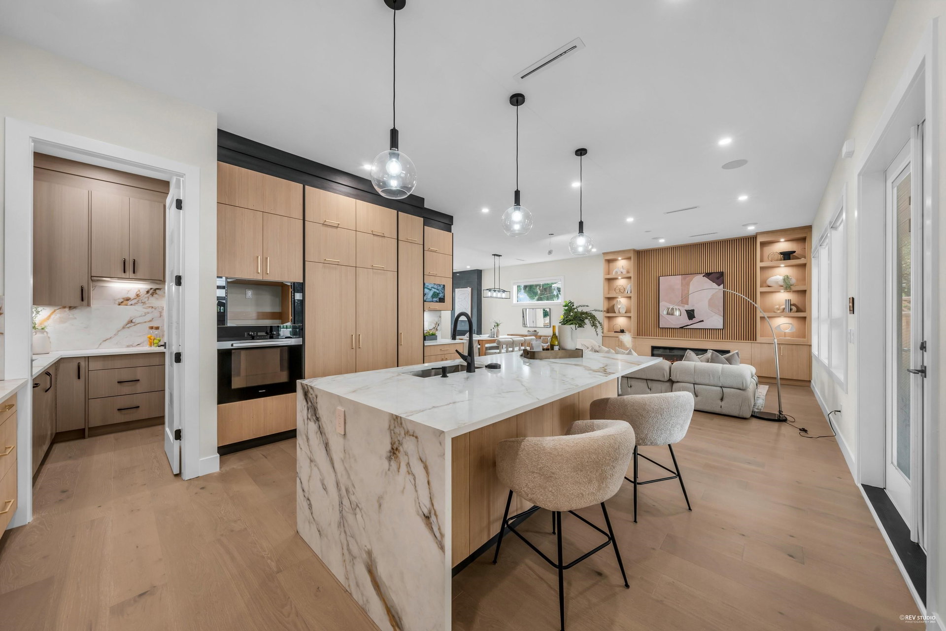 Panoramic Views; this brand-new custom home offers beautiful downtown New West City and Fraser River views. This expansive 7 bedroom, 6.5 bathroom property features over 3800+ sq ft of extravagant living space over 3 levels plus a two bedroom laneway house. Open-concept floor plans and over 400 sqft of exterior deck space, Fully equipped kitchen with top-of-the-line Miele appliances, high-end cabinetry, in-floor radiant heating, A/C throughout. The lower level features a two bedroom legal suite plus additional nanny suite with one bedroom and living space, both with separate entrances. Prime West End neighborhood with bus stop right at your doorstep, a short walk to Lord Tweedsmuir Elementary.