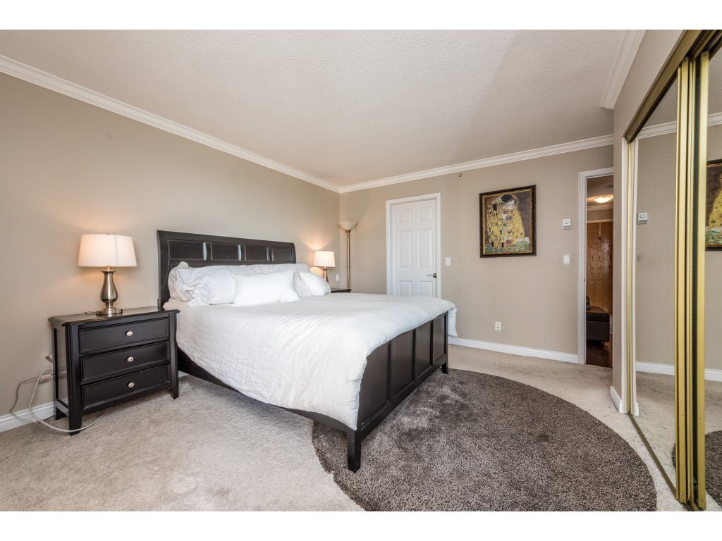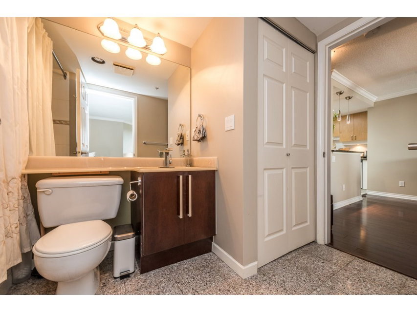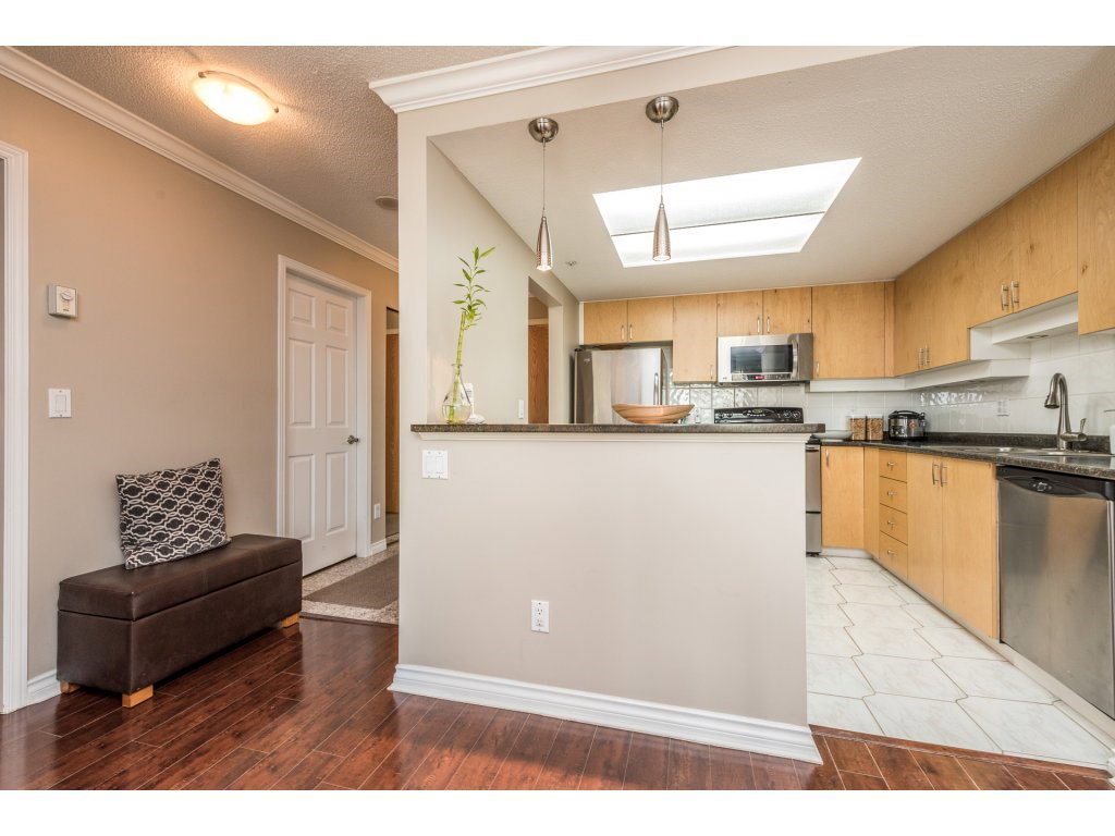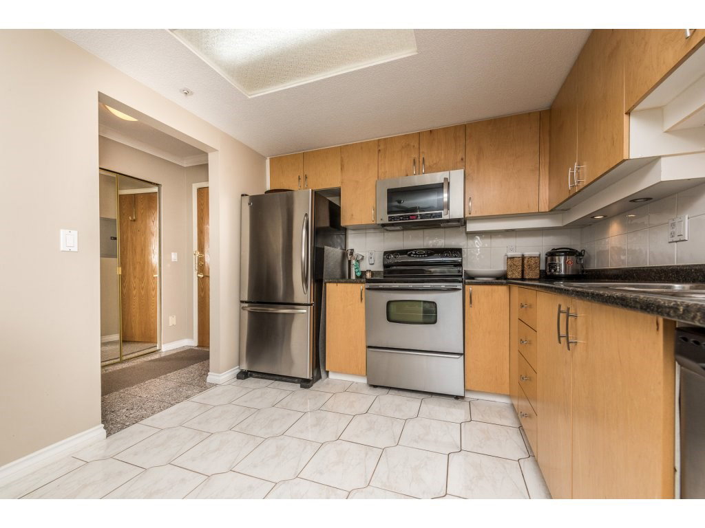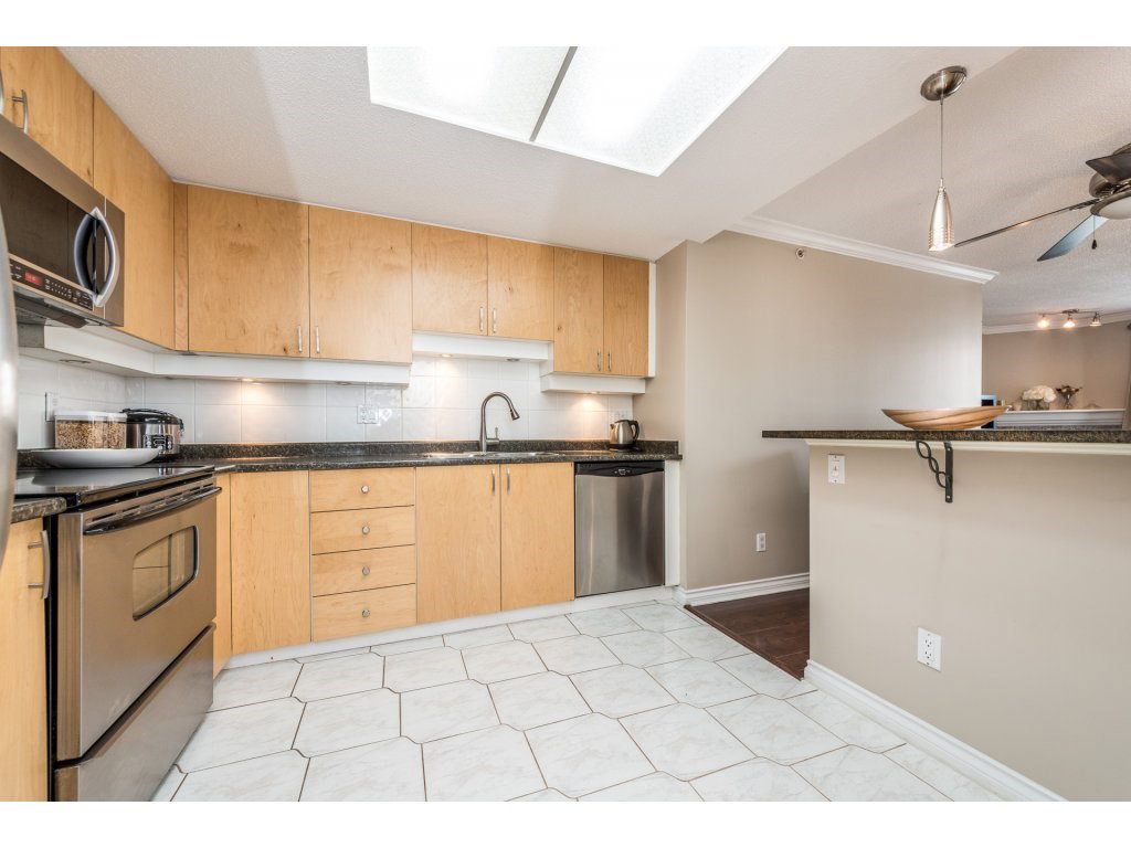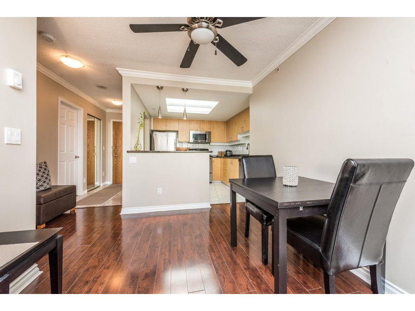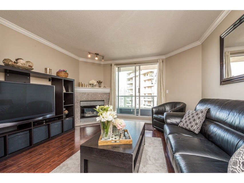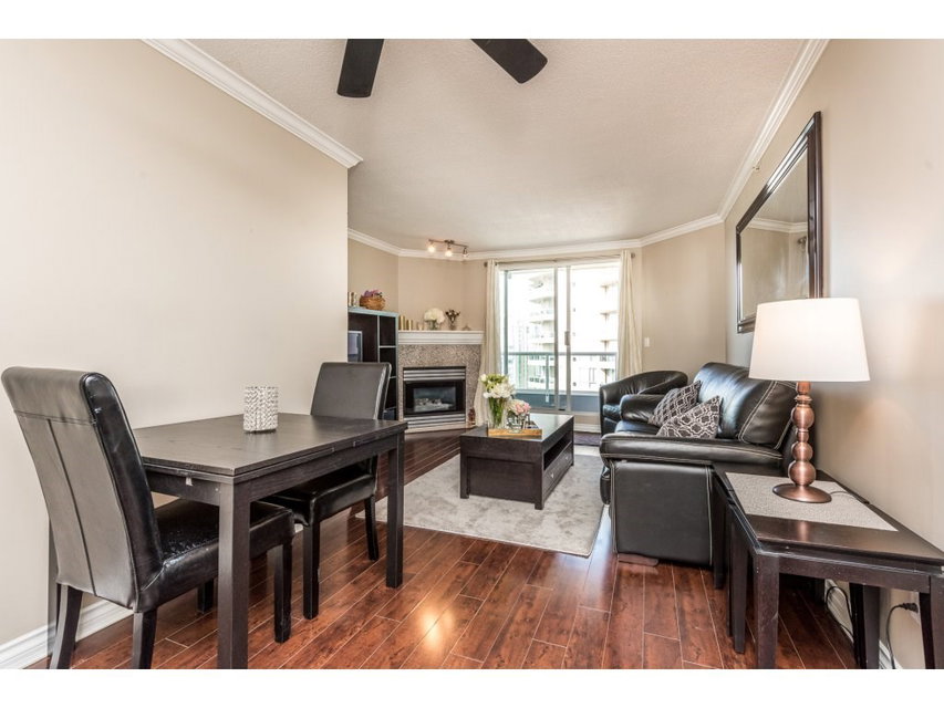 Attention all investors, this is the perfect opportunity for you! This lovely 1 bedroom + den in prestigious Riviera features engineered maple floors, crown moulding, granite breakfast bar, gas fireplace in living room and insuite laundry. Spacious deck just off of living room with a wonderful view of the Fraser River and city. 2 pets (18 inches max) & rentals allowed. Building amenities include indoor pool, hot tub and gym. All located within steps to Skytrain, shopping, restaurants and much more. OPEN HOUSE Fri Sept 23 5-7pm, Sat Sept 24 2:30-4:30pm & Sun Sept 25 11:30-1:30pm.
