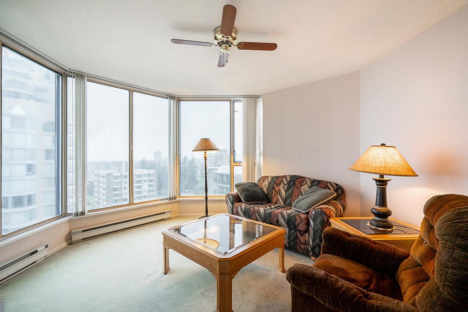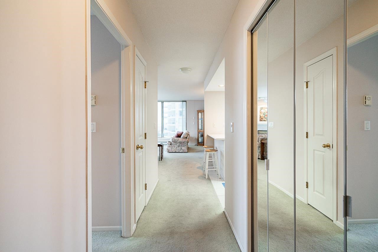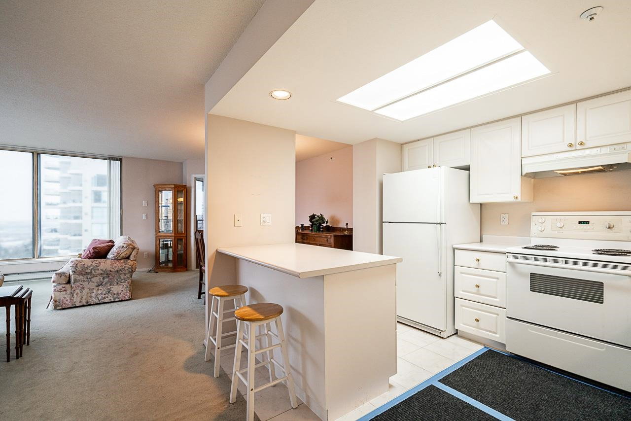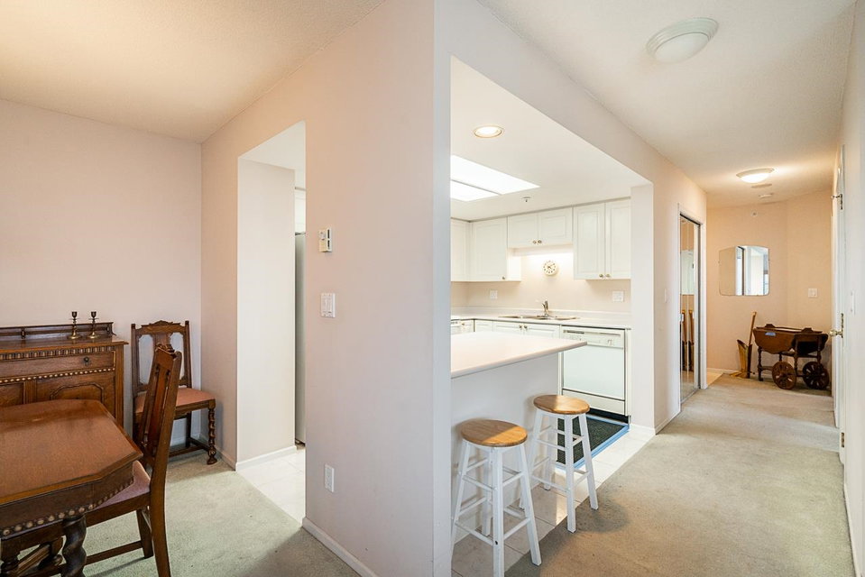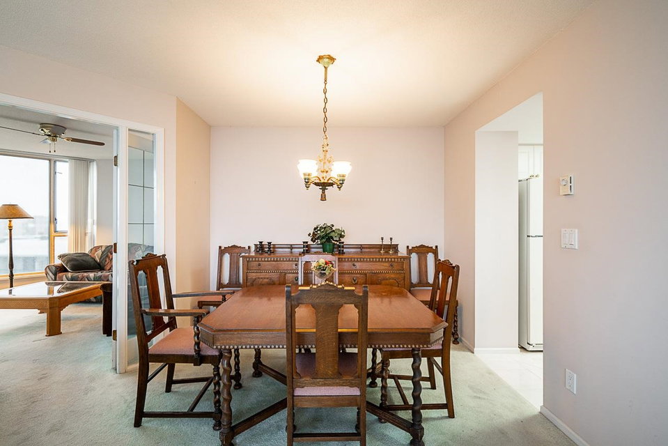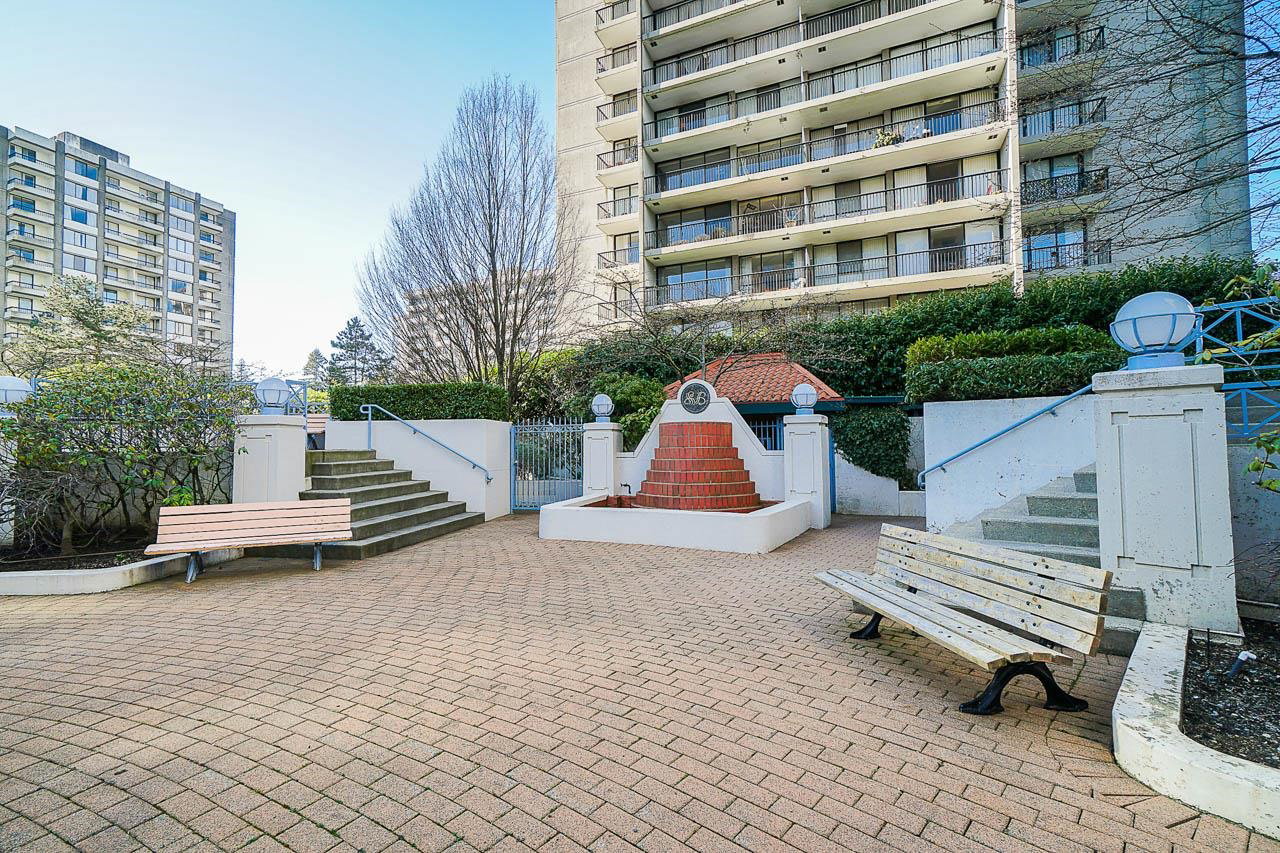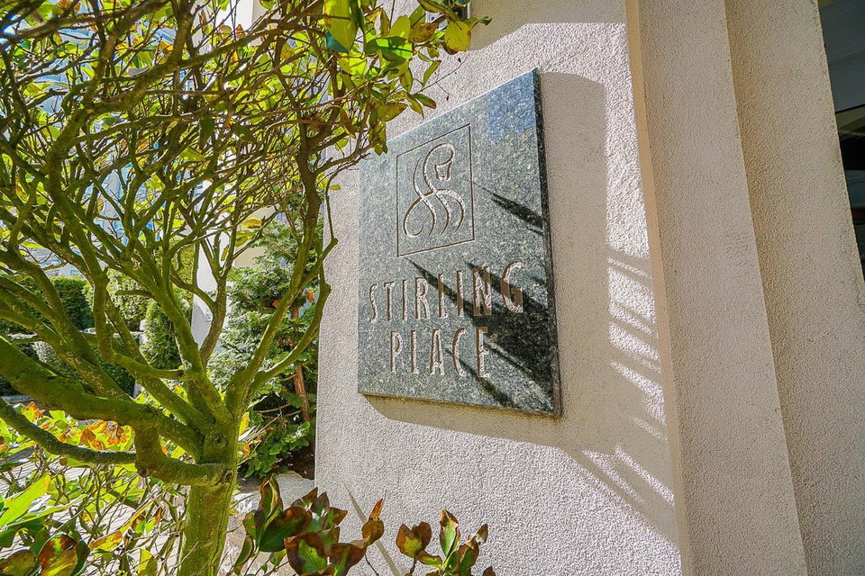 Prestigious Stirling Place! Conveniently located in uptown New Westminster, this lovely two bedroom and den offers only the best. Very well cared for, this one owner home features two large bedrooms; the primary has a large four piece ensuite and plenty of closet space. Spacious kitchen opens out to a large living room and dining room. Large windows offering plenty of natural light and air flow. Balcony off living room and one off the two bedrooms. Fabulous city, water and mountain views. One locker, one parking. Just steps to schools, transit, library, shopping, restaurants, Moody Park and Century House. EV charging stations available. Newer plumbing and elevator upgrades.