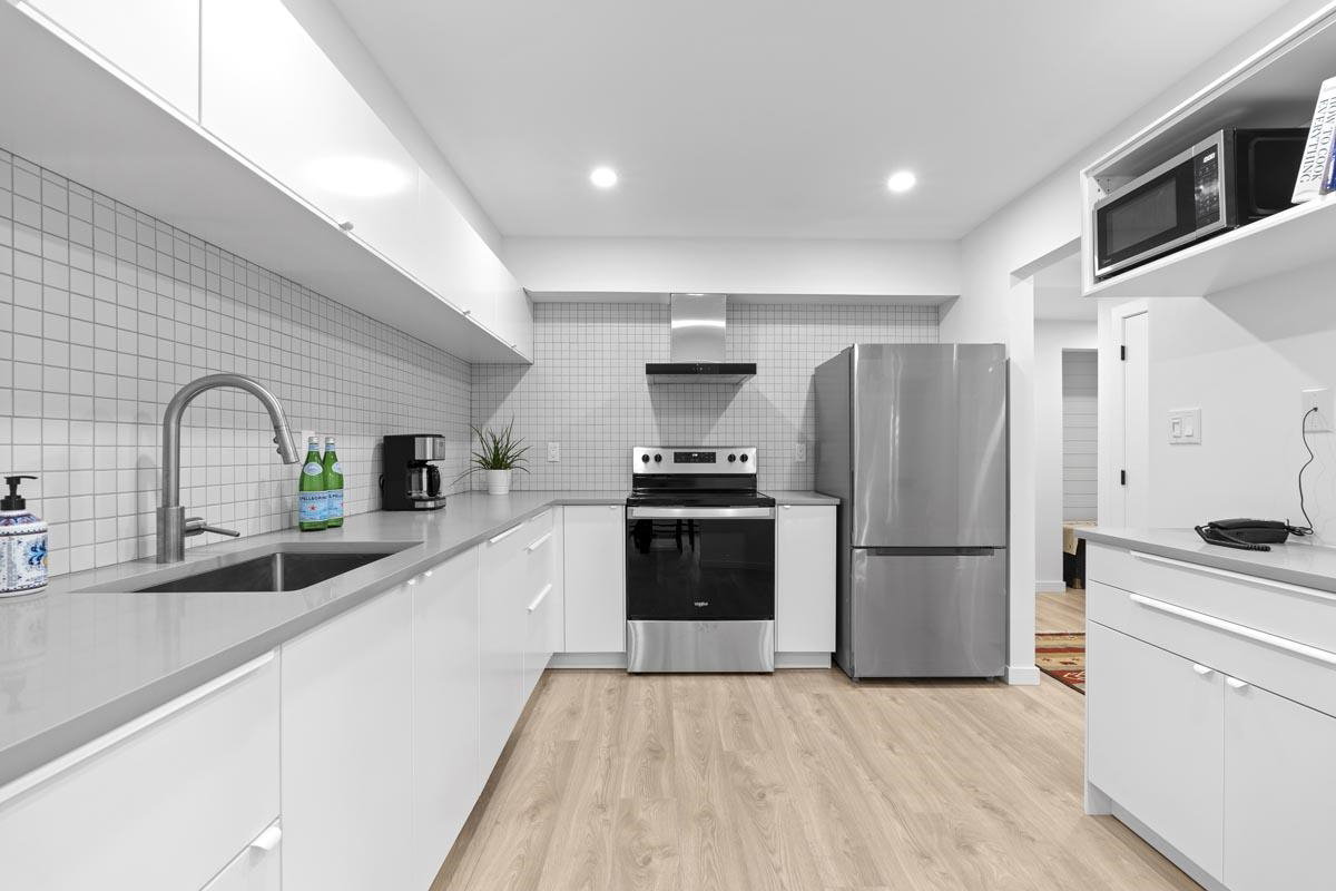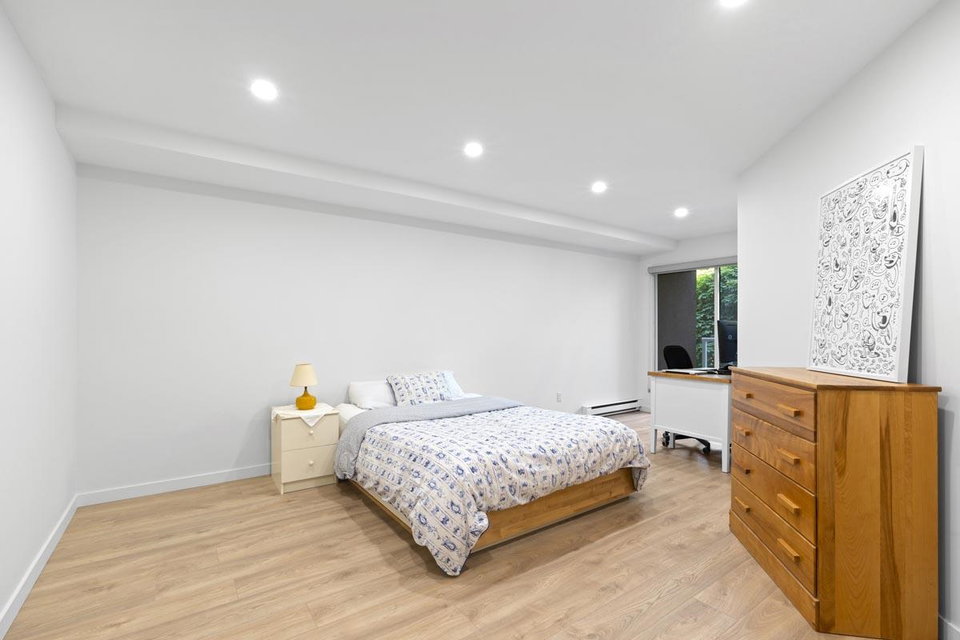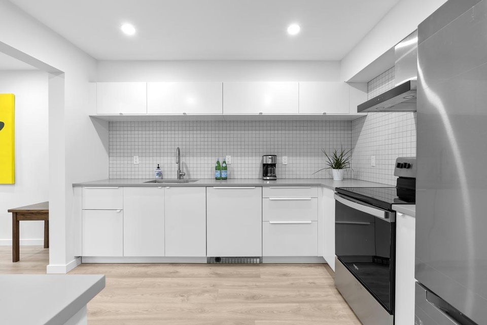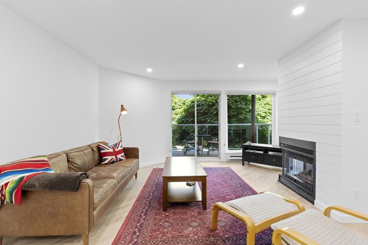 Your new home awaits! This one needs to be seen to be fully appreciated. Everything has been done for the new owner. Stylish laminate flooring throughout. Gorgeous sleek white kitchen with new stainless steel appliances. Spa like four piece bath with under vanity lighting. One of the best features is the “real” laundry room, with new side by side washer and dryer. Gas fireplace in living room. With over 950 square feet this one bedroom offers plenty of room. There is a locker on the same floor and one parking. Just steps to the Boardwalk, shopping, transit, Skytrain and entertainment. Two pets allowed, weighing up to 22 lbs.