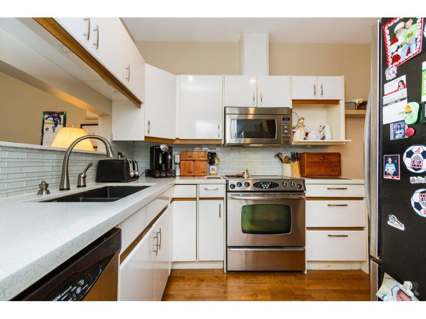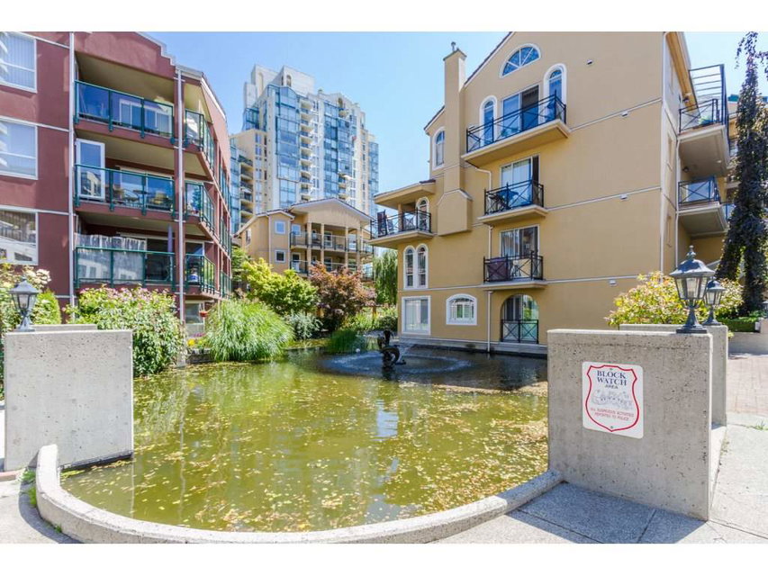 Not your typical condo, what a great place this would be to call home. Lovely two bedroom, two bath home overlooking the lagoon and gardens. Updated kitchen features white cabinetry, quartz counters and stainless steel appliances. Three piece guest bath has been updated with new vanity and granite counter. Spacious Master bedroom has a four piece ensuite. 9 Foot ceilings, gas fire place, insuite laundry, 2 parking stalls, 1 storage locker all add up to one great home. Just a short walk to transit, skytrain, shopping and entertainment district.