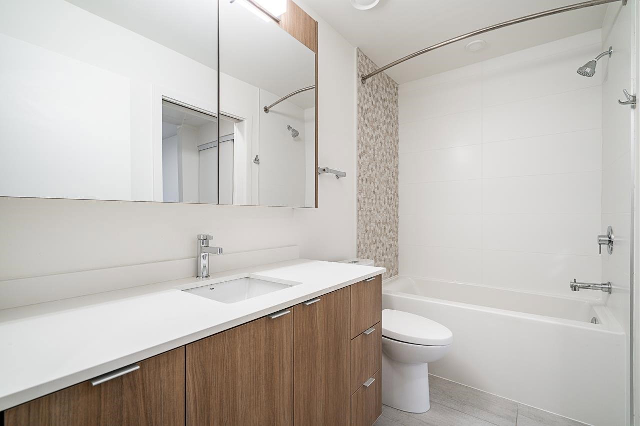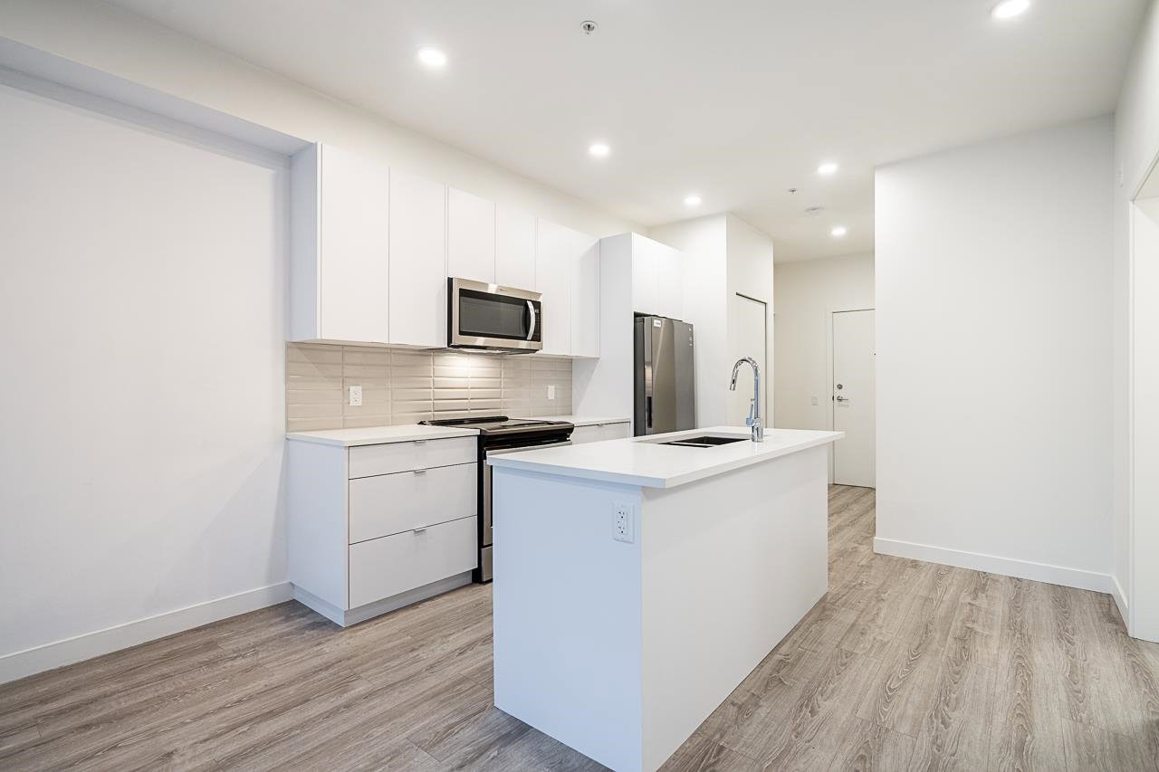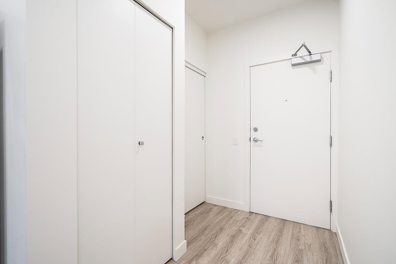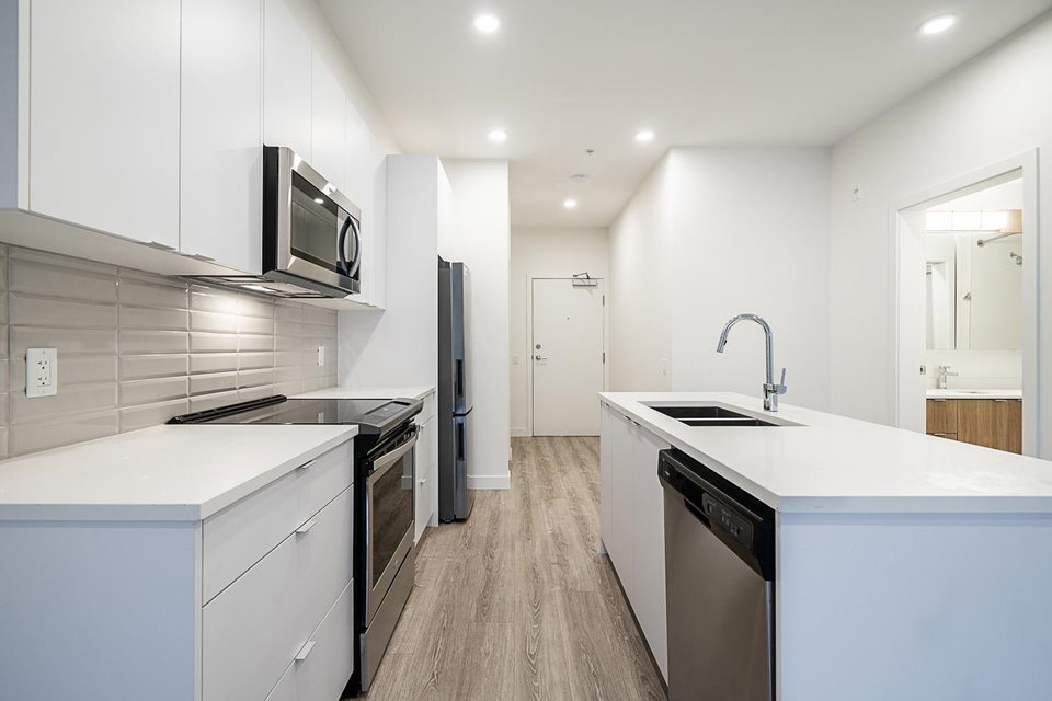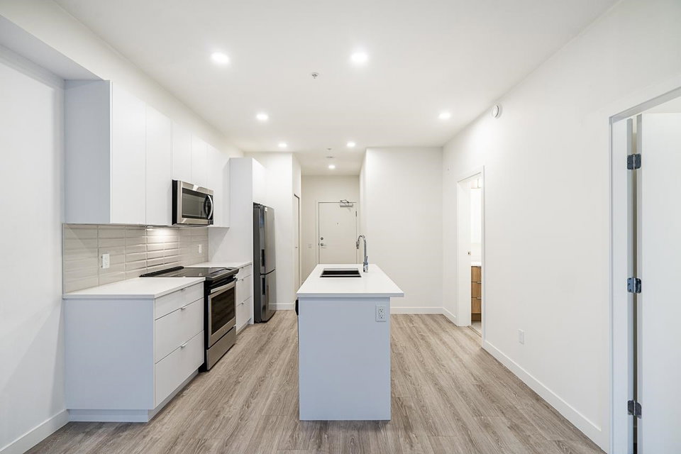 Here is a great opportunity to enter the market. Built in 2020 the Amira is still under warranty. This lovely one bedroom, 618 square feet, is well situated in the building. Quality laminate floors throughout. Kitchen is thoughtfully laid out offering plenty of cabinets and counter space. Beautiful quartz counters and polished chrome fixtures. This home comes with one secured parking stall and insuite laundry. Located in the uptown area of New Westminster, it is close to transit, shopping, restaurants and entertainment. Still in perfect condition. Large patio off the living room. 2 dogs/cats are welcome.