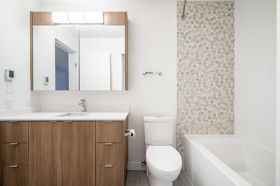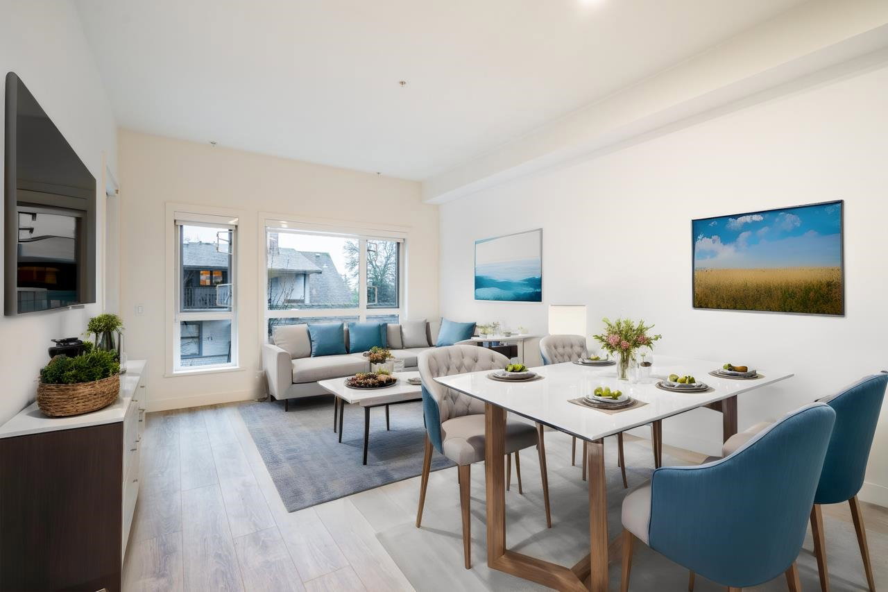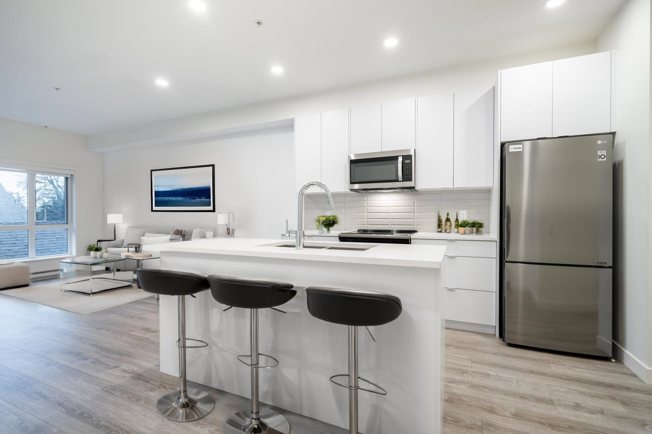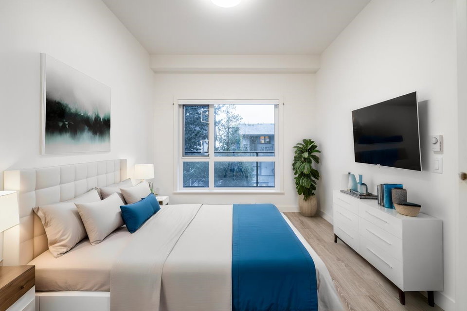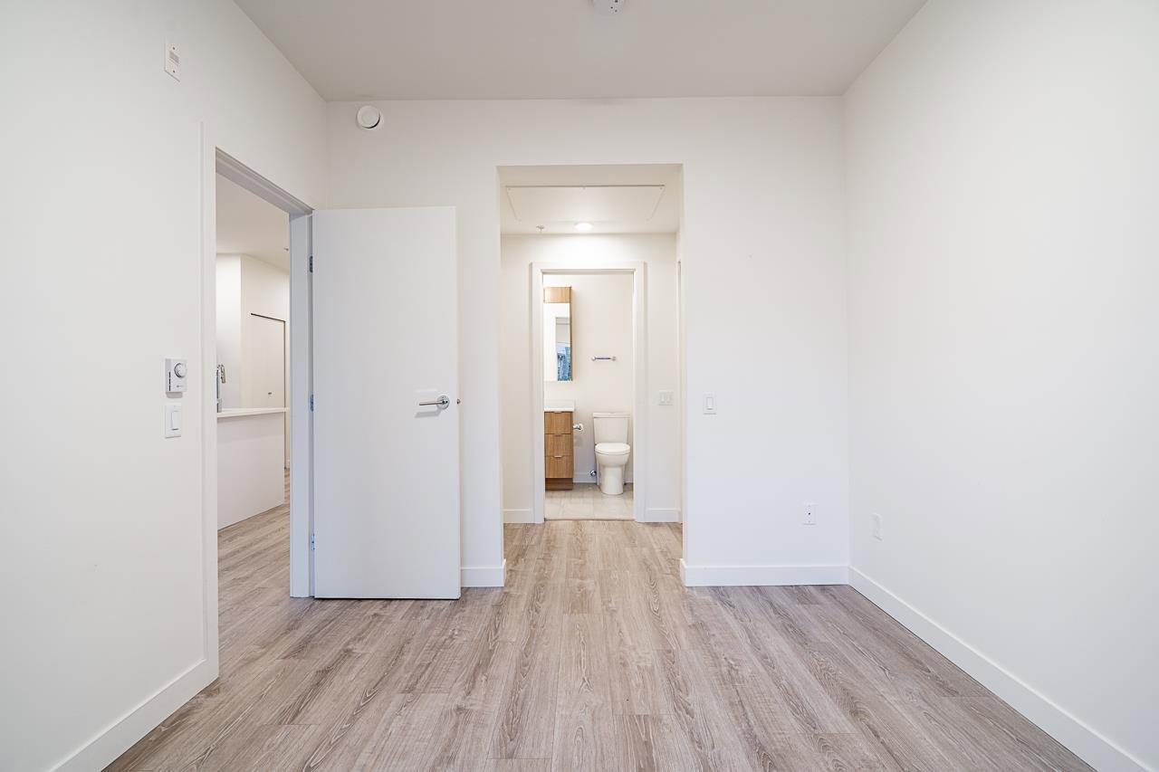 Here is a great opportunity to enter the market. Built in 2020 the Amira is still under warranty. This lovely one bedroom, 618 square feet, is well situated in the building. Quality laminate floors throughout. Kitchen is thoughtfully laid out offering plenty of cabinets and counter space. Beautiful quartz counters and polished chrome fixtures. This home comes with one secured parking stall and insuite laundry. Located in the uptown area of New Westminster, it is close to transit, shopping, restaurants and entertainment. Still in perfect condition. Large patio off the living room. 2 dogs/cats are welcome.