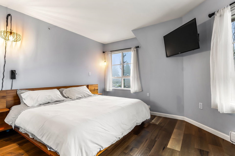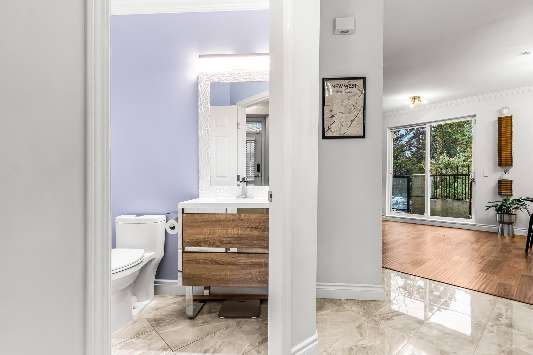 3 bed, 3 bath, 2 level townhouse in popular Glenbrooke North! Homes in this self managed strata Chesham Walk are rarely available. Tons of updates throughout including kitchen & appliances, engineered hardwood floors, light fixtures. Gas fireplace & beautiful wood mantle in living room (gas is included in the strata fee). Powder room & 9 ft ceilings on main floor. All bedrooms & washer/dryer on upper level. Spacious primary bedroom w/ ensuite bathroom. Large SW facing balcony, gas hookup for BBQ. Bright, well maintained home. 2 side-by-side parking stalls with strata approved EV charger! Large storage locker, 2 pets allowed. Within walking distance to a variety of amenities – Queens Park, middle & elementary schools, Safeway, transit & more.