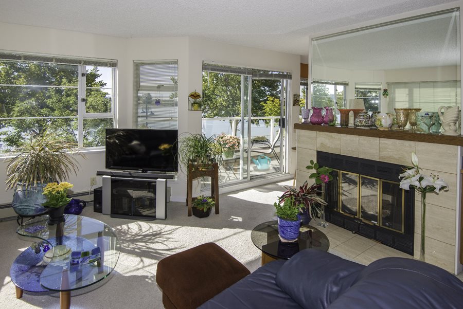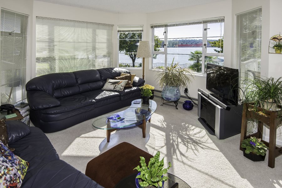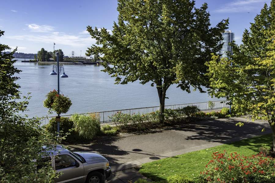 RARE OPPORTUNITY to own a CORNER SUITE with Panoramic river view from this waterfront condominium. Features 2 bedrooms, den, oak cabinets in kitchen, gas F/P, laundry, 2 balconies, separate shower in main bath, mirrored closet doors in master bedroom. Pets are allowed. Recently rain screened owner paid approximately $36,000.
