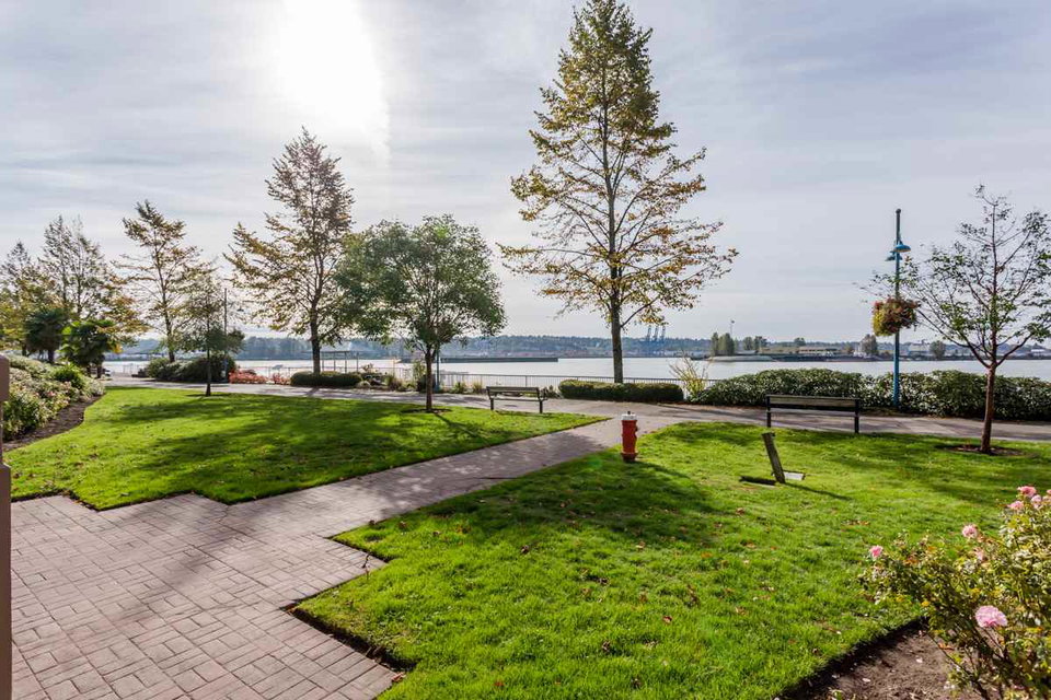 2 bedroom, 2 bathroom condo with nearly 1200 sq ft at the Quay in New West. Large covered balcony off living room with river views! Spacious living room with gas fireplace and windows throughout making it very bright. Kitchen has tons of counterspace and cabinets with breakfast bar. Master bedroom on opposite side of living area is tucked away and has it’s own full ensuite bathroom. Insuite laundry, 1 underground parking stall and visitor parking. Unit is very conveniently located and only steps from the elevator, stairs & parking stall. 1 dog or cat allowed. Stroll out to the boardwalk, head to the River Market, jump on the skytrain or have a bite at Wild Rice. All the amenities are here! Enjoy the Quay lifestyle. You won’t be disappointed.