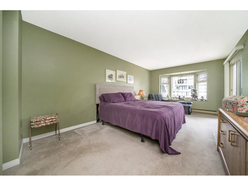 This 1394 square foot, two bedroom, two bath home checks all the boxes. The huge roof top deck comes as a nice surprise with a peek-a-boo view of the park and North Shore Mountains. Master has lots of closet space plus a four piece ensuite. Wood burning fireplace in living room. Large covered balcony between living room & master bedroom. Spacious dining room. Kitchen has newer appliances as well as an eating area for informal everyday dining. One parking and one locker. Two cats, sorry no dogs. Four rentals allowed. Easy walk to shopping, transit, parks, and schools.