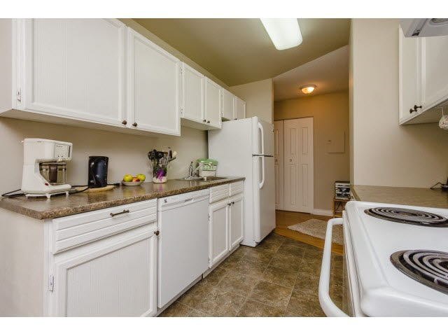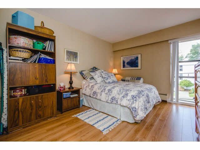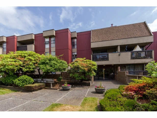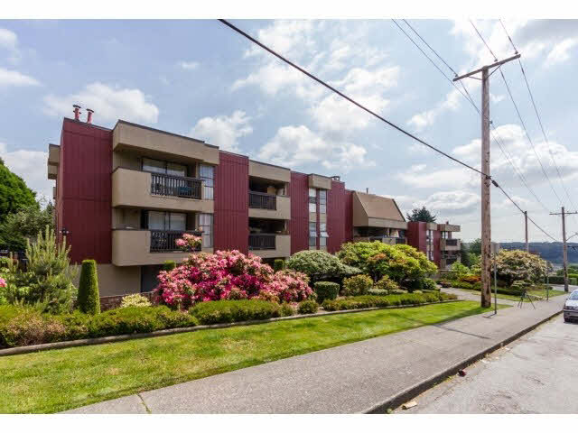 TOP FLOOR, CORNER UNIT 2 bedroom, 2 bathroom condo in Hillside Terrace! Insuite laundry & good sized balcony w/ river views. Nicely renovated throughout: beautiful laminate floors, updated kitchen (dishwasher too) & bathrooms give this home a modern feel. Huge living & dining areas w/ a fantastic layout. Large Master bedroom w/ ensuite bathroom & spacious closet. Maintenance fee includes GAS, HEAT & HOT WATER. Lots of natural light & windows throughout. Great building: NEW ROOF, re-piped 2002, exterior painted 2008. Excellent location w/ walk score of 82. All the uptown New West amenities are nearby: Moody Park, Royal City Centre, Save On Foods, schools & bus routes. Sorry no pets.