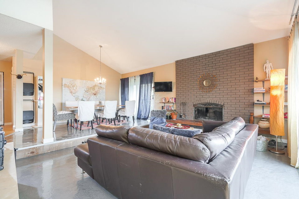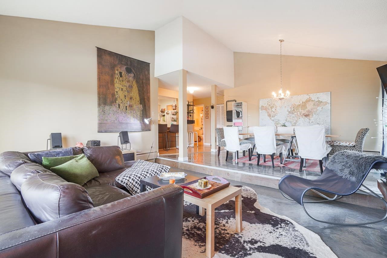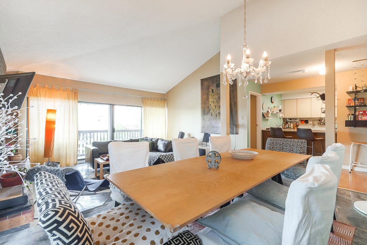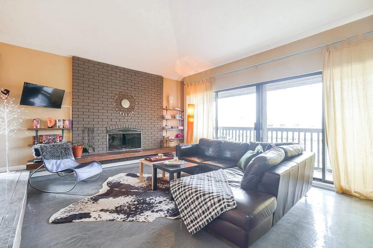 Looking for a unique condo that is not your typical box, then this might just be the one. This top floor corner home features two large bedrooms and 1.5 baths. Concrete polished floor in sunken living room, plus a wood burning fireplace. Vaulted ceiling in living room. Living room sliding doors lead to large sundeck. Dining area can easily accommodate 8 – 10 people. Sliders from the dining area lead out to a second deck. Insuite laundry, one parking stall and one locker. Pets are welcome. Conveniently located in uptown New Westminster; close to shopping, restaurants, Massey Theatre, schools, parks and transit.