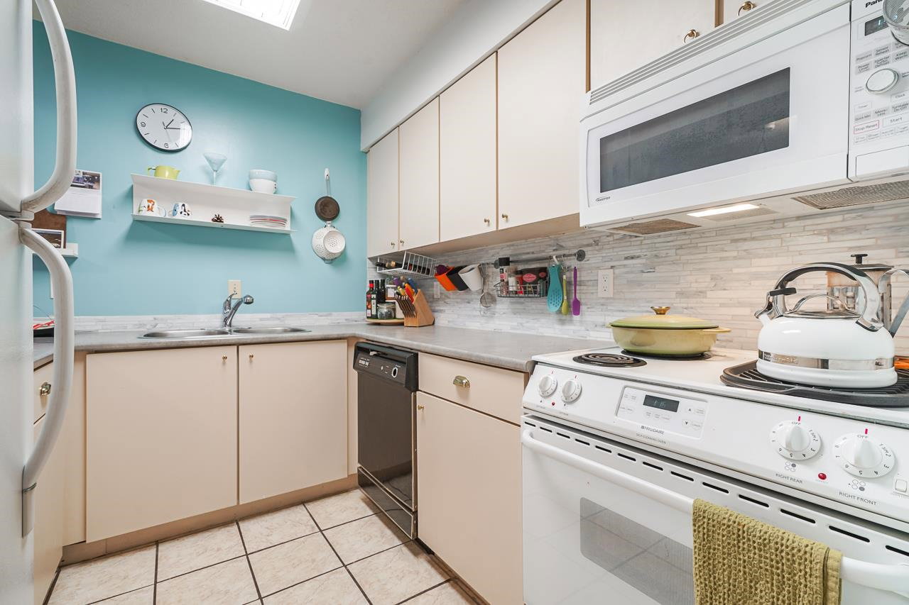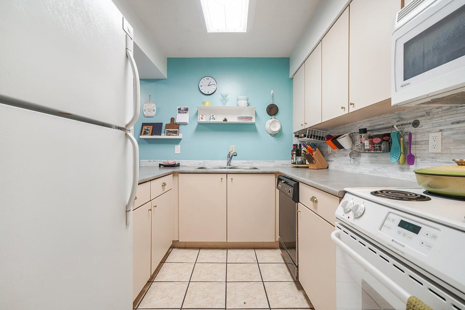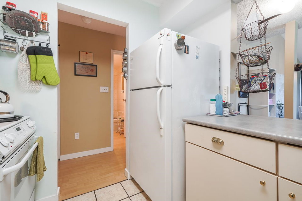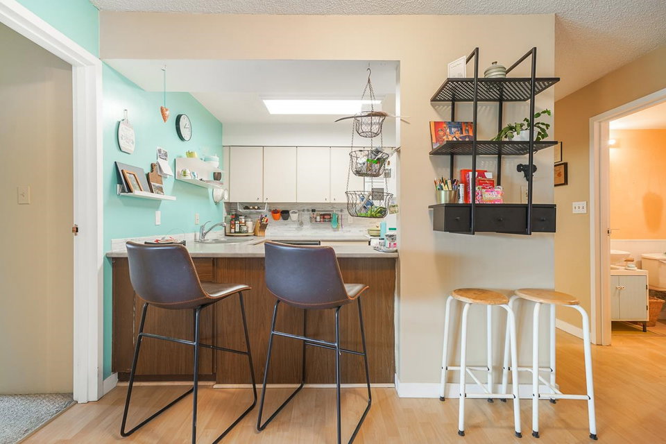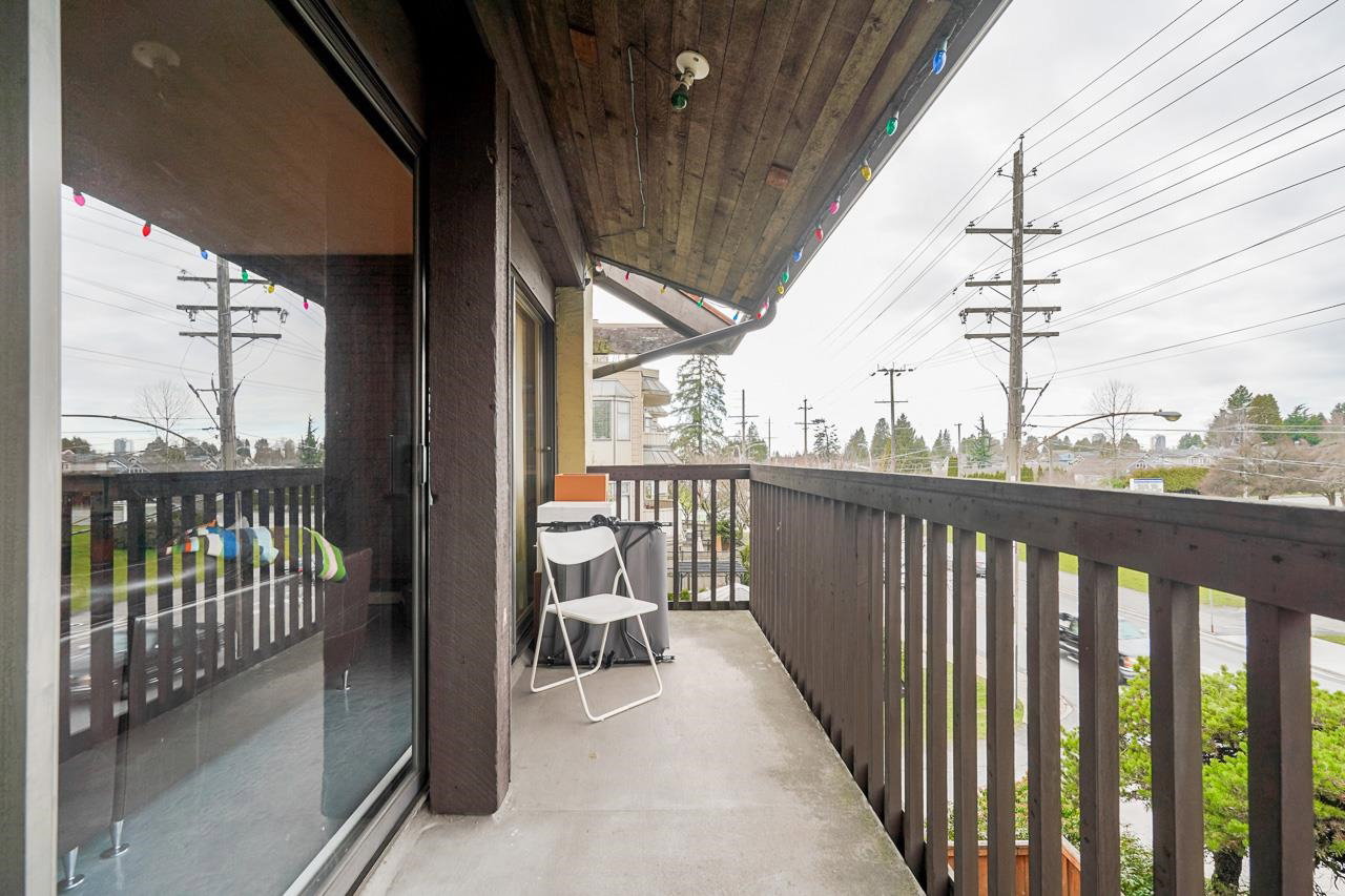 Looking for a unique condo that is not your typical box, then this might just be the one. This top floor corner home features two large bedrooms and 1.5 baths. Concrete polished floor in sunken living room, plus a wood burning fireplace. Vaulted ceiling in living room. Living room sliding doors lead to large sundeck. Dining area can easily accommodate 8 – 10 people. Sliders from the dining area lead out to a second deck. Insuite laundry, one parking stall and one locker. Pets are welcome. Conveniently located in uptown New Westminster; close to shopping, restaurants, Massey Theatre, schools, parks and transit.