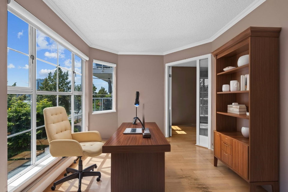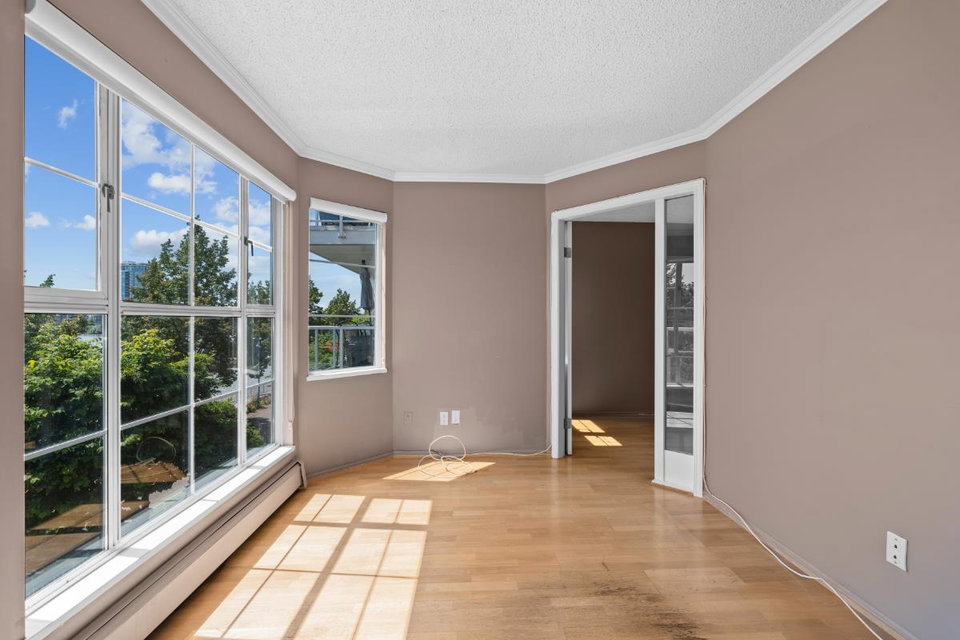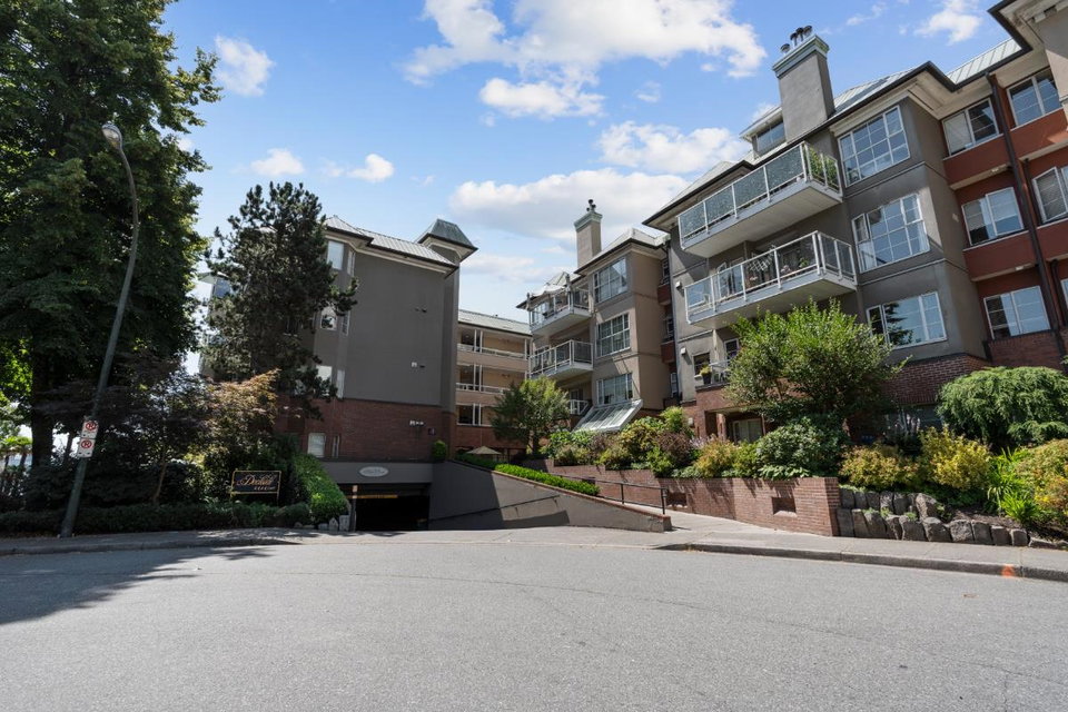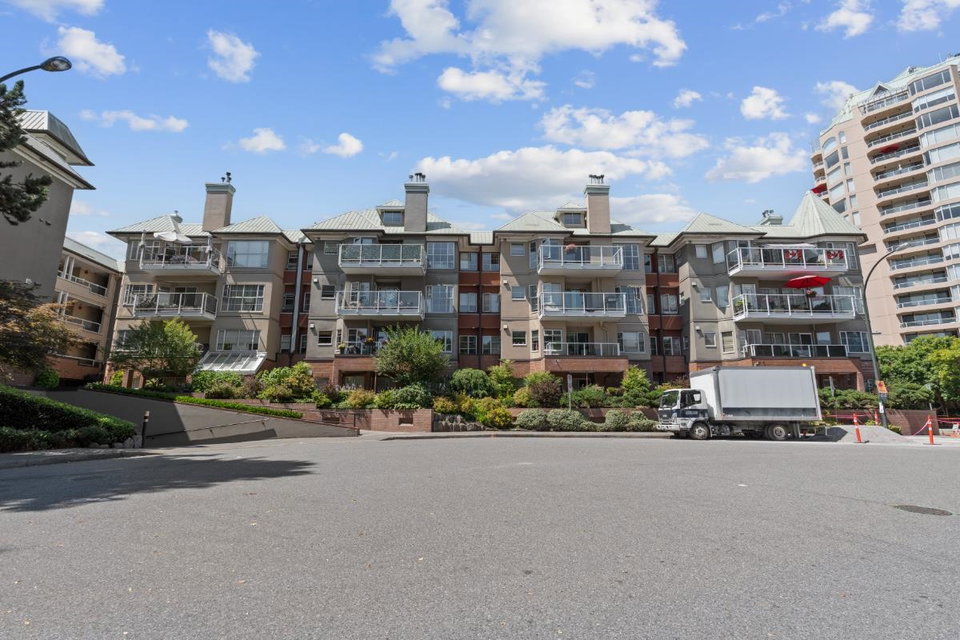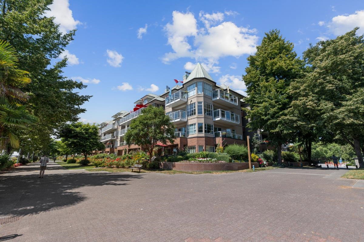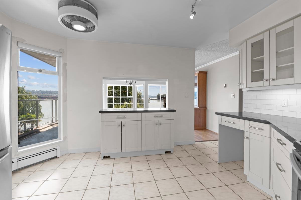 This spacious riverfront 2 bedroom and den corner unit at The Quay offers beautiful river and boardwalk views. 1,300 sq ft of bright living space with an abundance of south-facing windows. 2 balconies to relax and take in the views. Large kitchen with loads of countertop & cabinet space. Spacious rooms throughout. Gas fireplace in living room, included in strata fee. 2 pets allowed. 1 parking stall and visitor parking. Common room with fitness equipment, pool table and sauna. Just steps to cafes, restaurants, shops, River Market, Pier Park, Skytrain & downtown New West. OPEN HOUSE SATURDAY SEPT. 27, 3-4:30 PM.