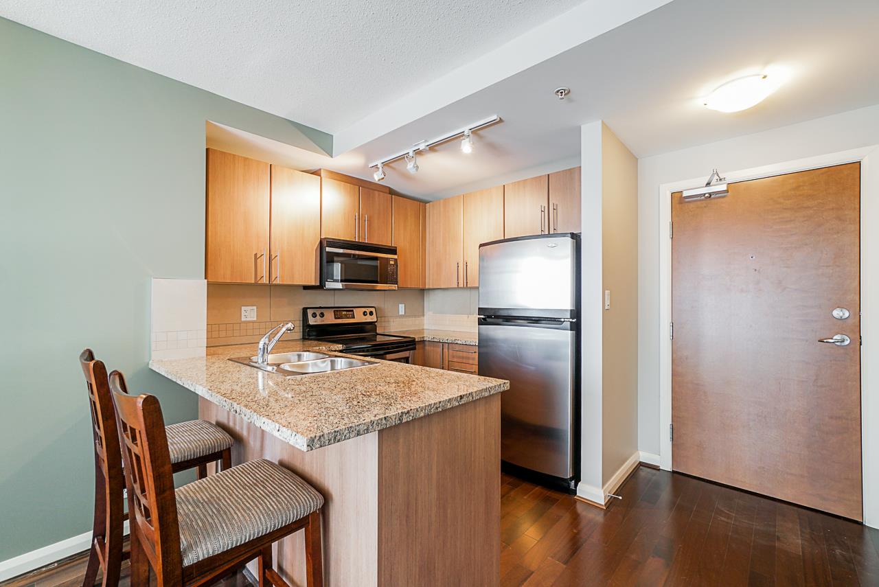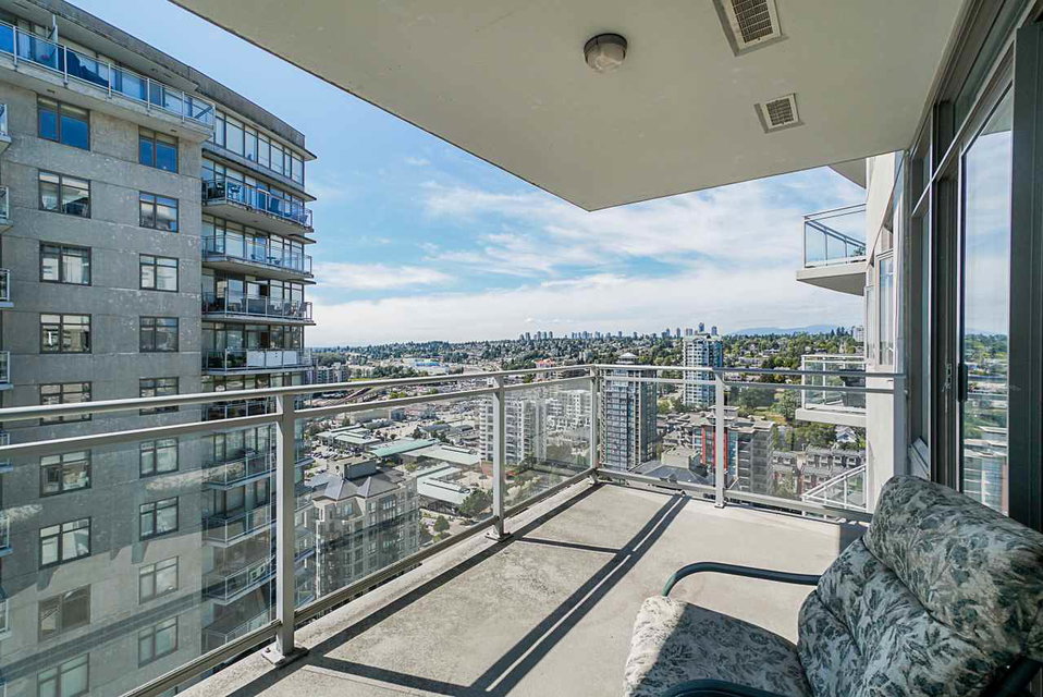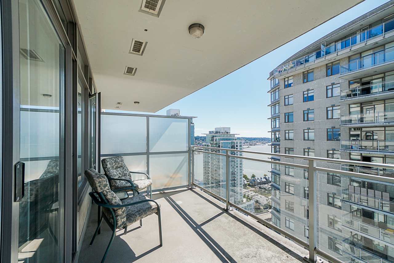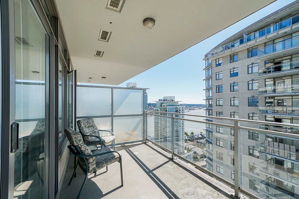 Incredible views from the 31st floor at Azure II, high above the New West skytrain station. The most convenient location in New West! No need for a vehicle as everything is just an elevator ride away – 89 walk score! Shops at New West, Safeway, gym, coffee shops, tons of restaurant options, pubs, banks & bus loop. Douglas College & Columbia St are steps away. 2 bedrooms, 2 bathrooms, nice open layout w/ bedrooms on opposite sides. Huge 114 sq ft balcony w/ river & city views! Electric fireplace in living room. Laminate floors, insuite laundry. Huge master bedroom w/ ensuite bathroom. Concrete building built in 2009 – gym, social room w/ kitchen that’s available to rent, massive common courtyard & full time caretaker. Rentals allowed, 2 small pets welcome, storage locker & parking stall.