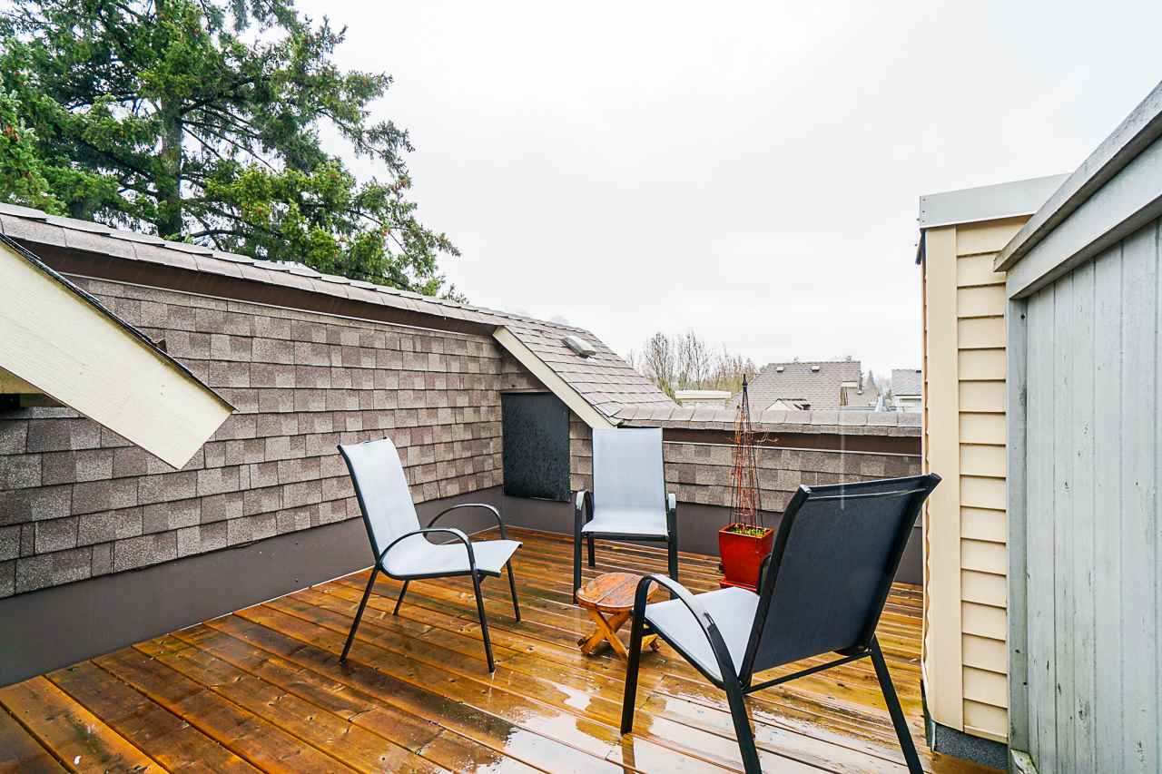 Riverstone by Adera. This stylish upper unit features high quality engineered wood floors throughout the main, two piece guest bath, updated kitchen, electric fireplace in living room. Spacious sundeck off living room, perfect for outdoor entertaining. Large master bedroom up and good sized second bedroom. Lots of windows, end unit, providing an abundance of natural light. Private rooftop deck. TWO PARKING STALLS and one locker. RENTALS ALLOWED WITH NO RESTRICTIONS. 1 pet allowed. Great location; close to Highgate Mall, Skytrain, schools and entertainment areas. All viewings by appointment only.