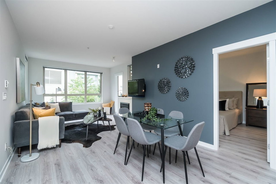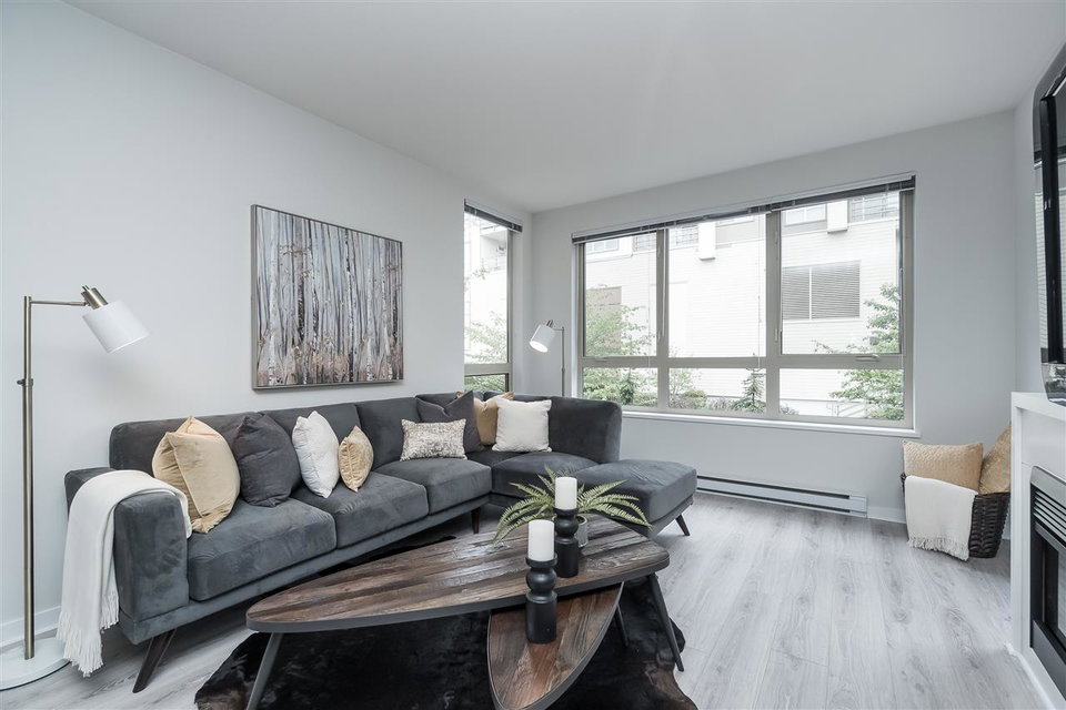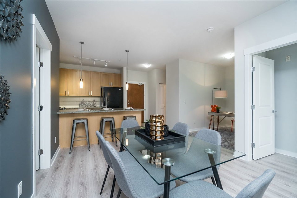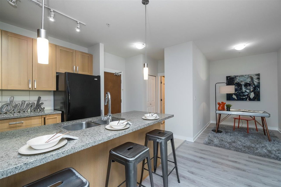 The Morgan, situated in one of South Surrey’s trendiest neighbourhood’s. This two bedroom and den home has just been upgraded with high quality laminate floors and designer paint. Kitchen features granite counters, stylish pendant lighting over breakfast bar, gas range. Four piece ensuite off master bedroom, insuite laundry plus a guest bath. This home is meticulous. Amenities include clubhouse, exercise centre, outdoor pool, hot tub, theatre room, and so much more. Walking distance to shopping & entertainment districts. One locker, one parking. Best of all, pets & rentals welcome.