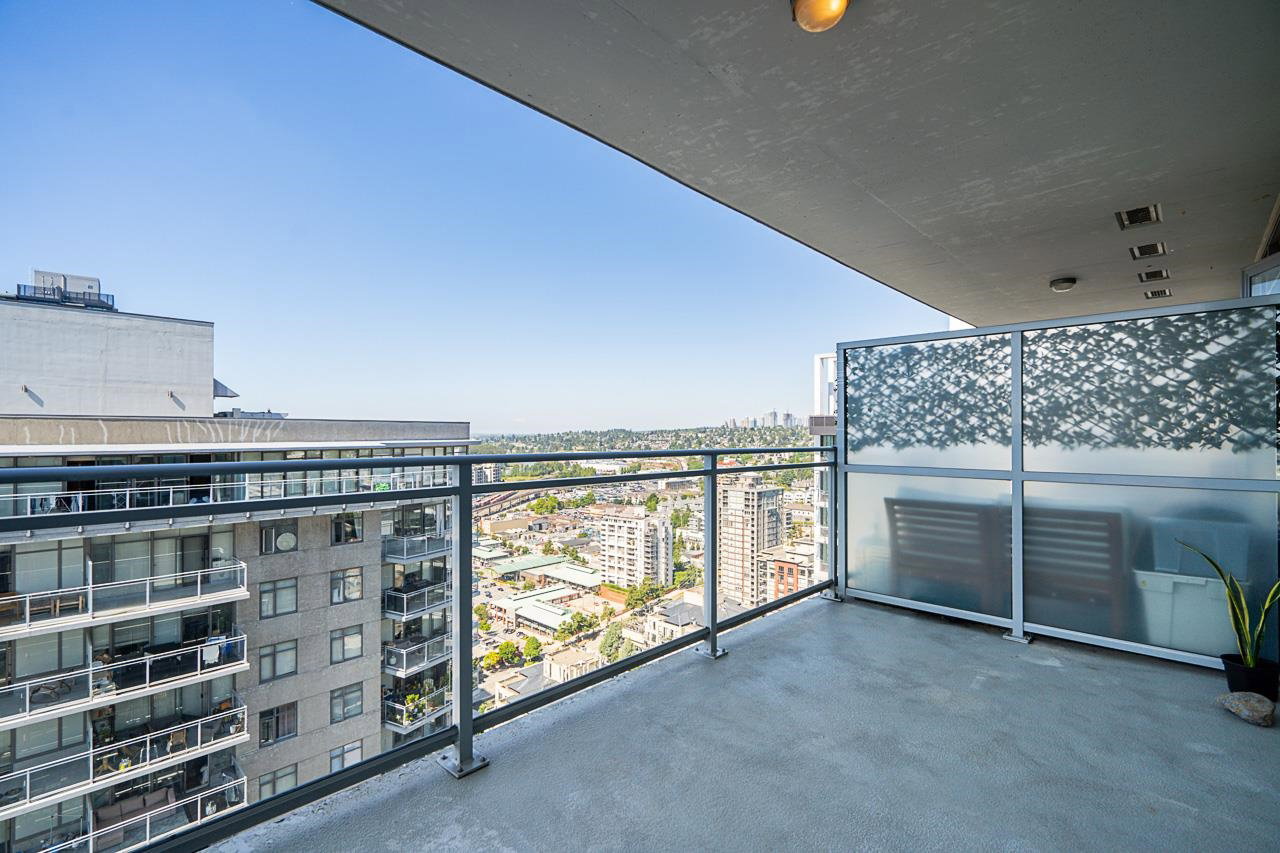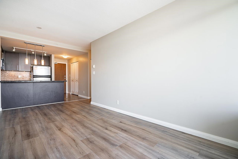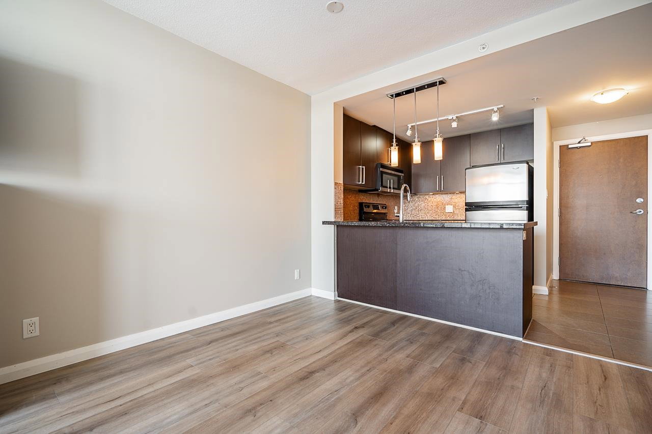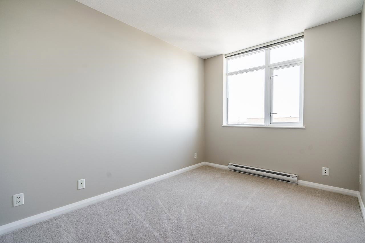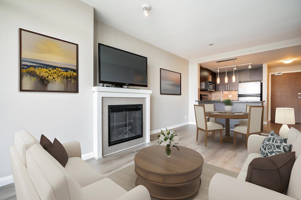 Love the high life, then you will appreciate this suite. This well cared for home features two bedrooms and two full bathrooms. New carpets in both bedrooms. Primary bedroom has a four piece ensuite. Quality, new laminate flooring throughout main living space. Kitchen has lots of cupboards, granite counters and stainless steel appliances. Electric fireplace in living room. Insuite laundry. Beautiful large deck off of living room offering spectacular river and city views. Steps to Sky Train, transit, shopping, Market and entertainment area. One pet allowed. 1 parking stall and one locker.