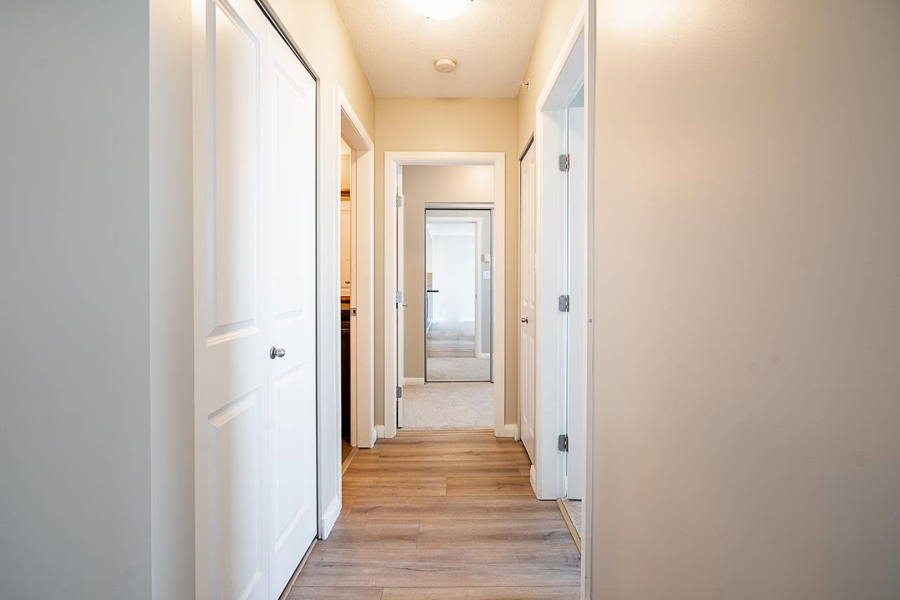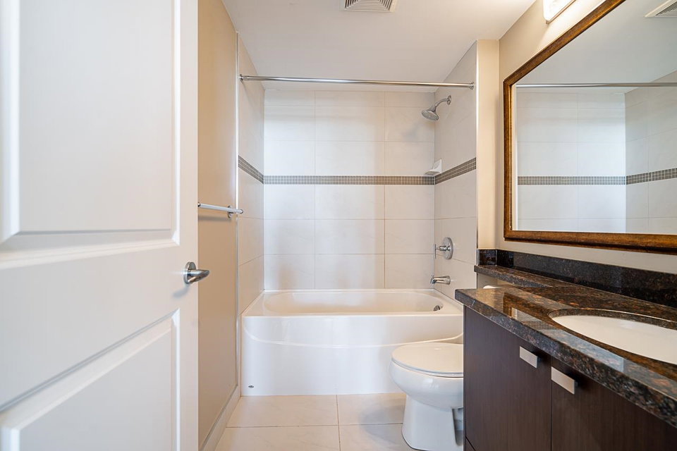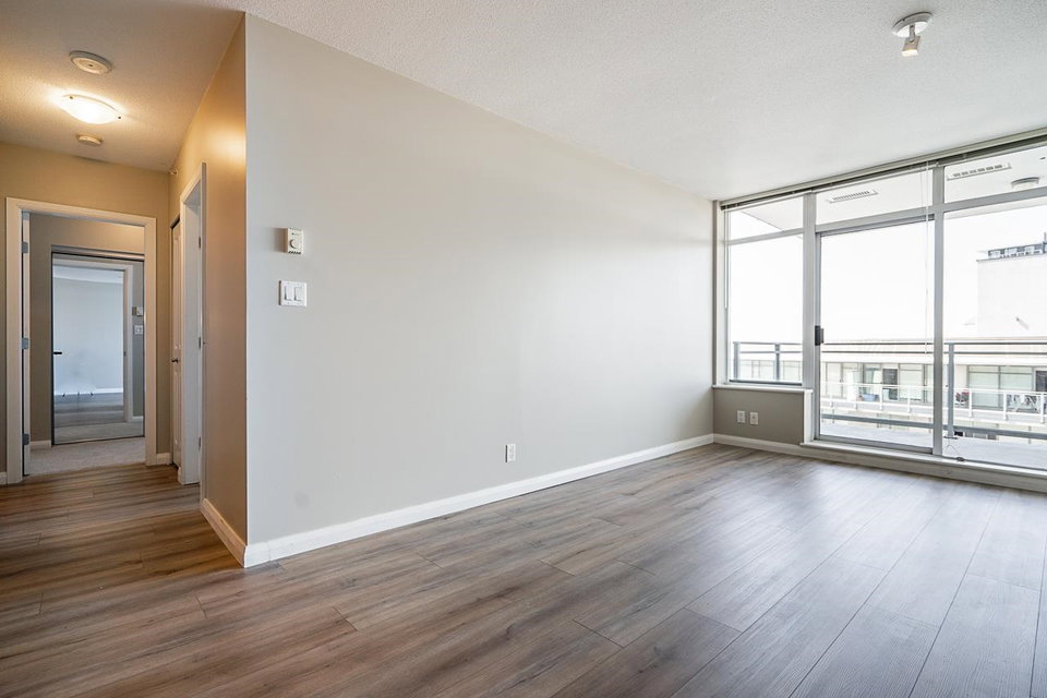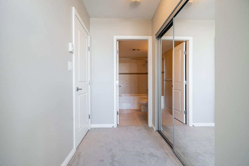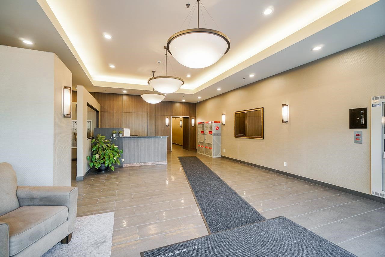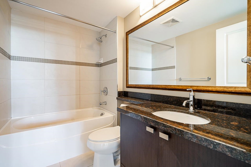 Love the high life, then you will appreciate this suite. This well cared for home features two bedrooms and two full bathrooms. New carpets in both bedrooms. Primary bedroom has a four piece ensuite. Quality, new laminate flooring throughout main living space. Kitchen has lots of cupboards, granite counters and stainless steel appliances. Electric fireplace in living room. Insuite laundry. Beautiful large deck off of living room offering spectacular river and city views. Steps to Sky Train, transit, shopping, Market and entertainment area. One pet allowed. 1 parking stall and one locker.