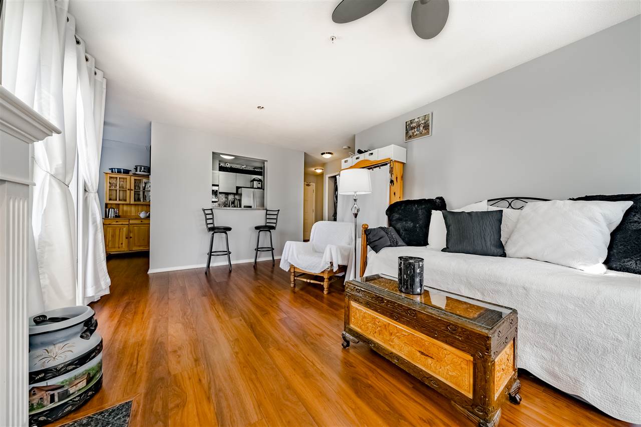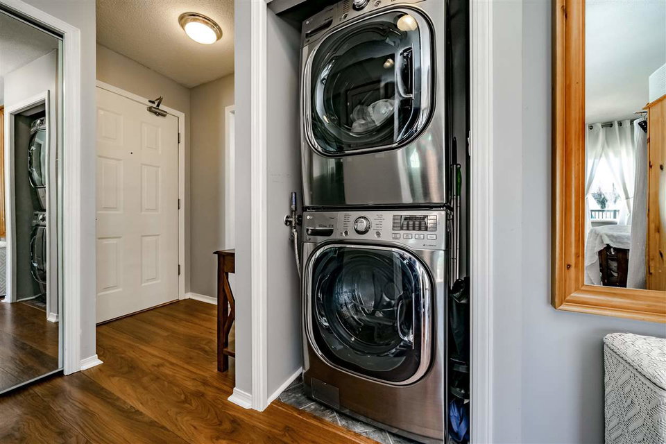 This could be just what you’re looking for. Top floor, corner unit, one bedroom & den with a very pretty outlook. This bright and airy home features quality laminate floors, stylish gas fireplace, new high end front loader washer and dryer. Updated kitchen with stainless steel appliances. Other building features include a guest suite, community vegetable garden, exercise room on the second floor, two private reading rooms & meeting room with kitchen. Please note this is an age restricted building 55+. One secure underground parking stall and one storage locker. Gas and hot water included in strata fee. Close to transit, shopping, Queens Park & Canada Games Pool.