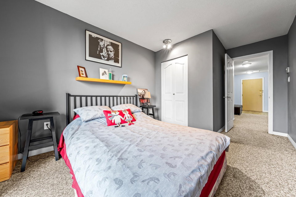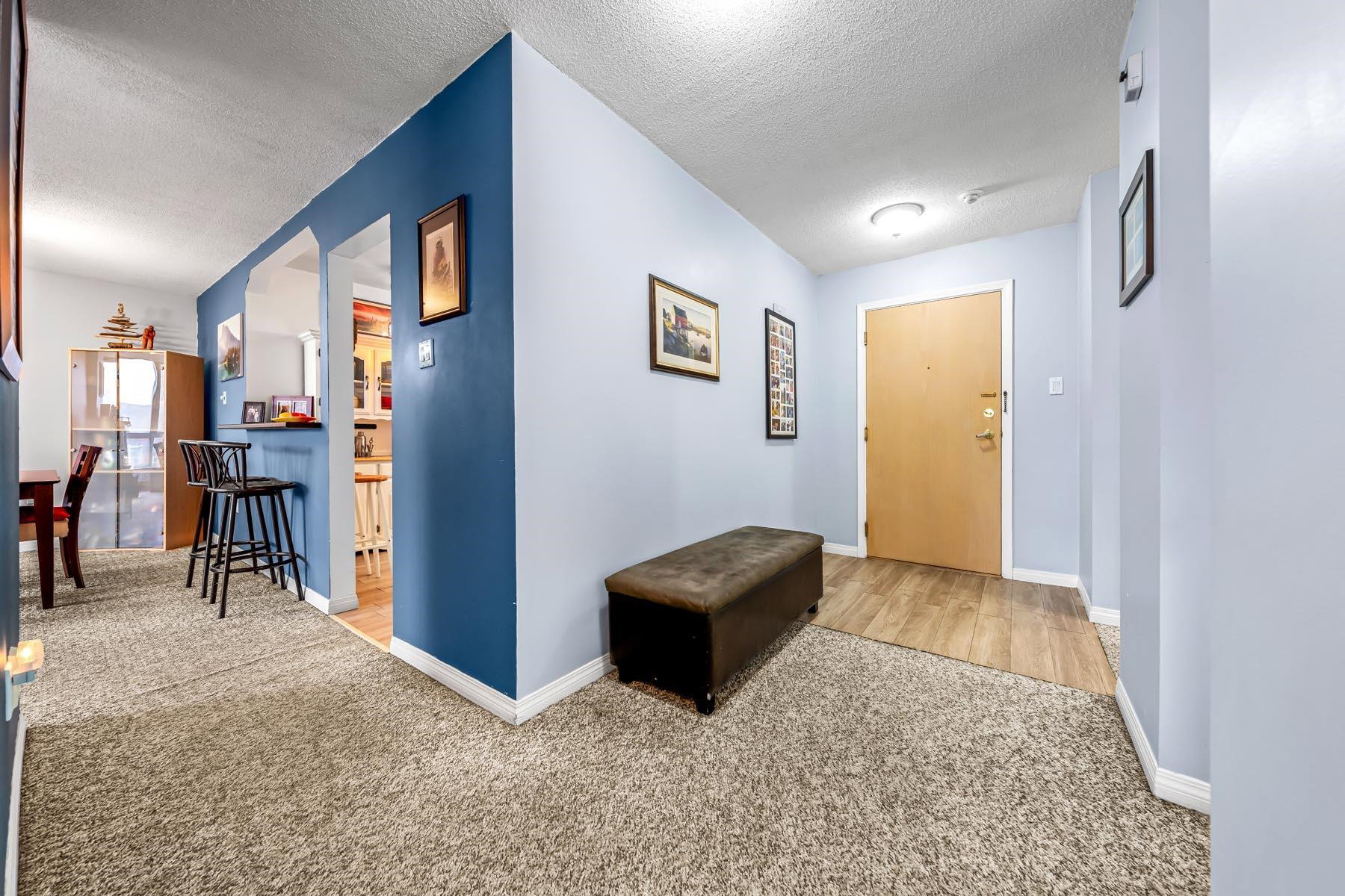 Welcome to this spacious two bedroom, two bath residence offering 1268 square feet of comfortable, well-designed living in a highly regarded complex. Thoughtfully laid out, the home features generous room sizes and a functional floor plan ideal for both everyday living and entertaining. Located in a prime convenient setting, just steps from transit, Sky Train, shopping, dining and entertainment-making city access effortless while enjoying a well-managed and established community. This desirable home includes one secured parking stall. OPEN HOUSE SATURDAY FEB. 21, 12 TO 2 PM.