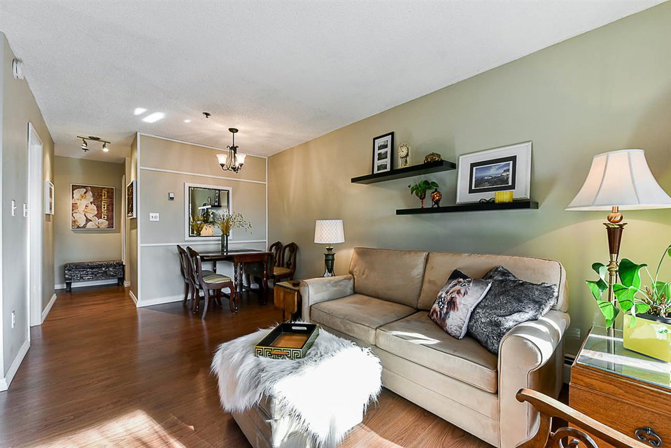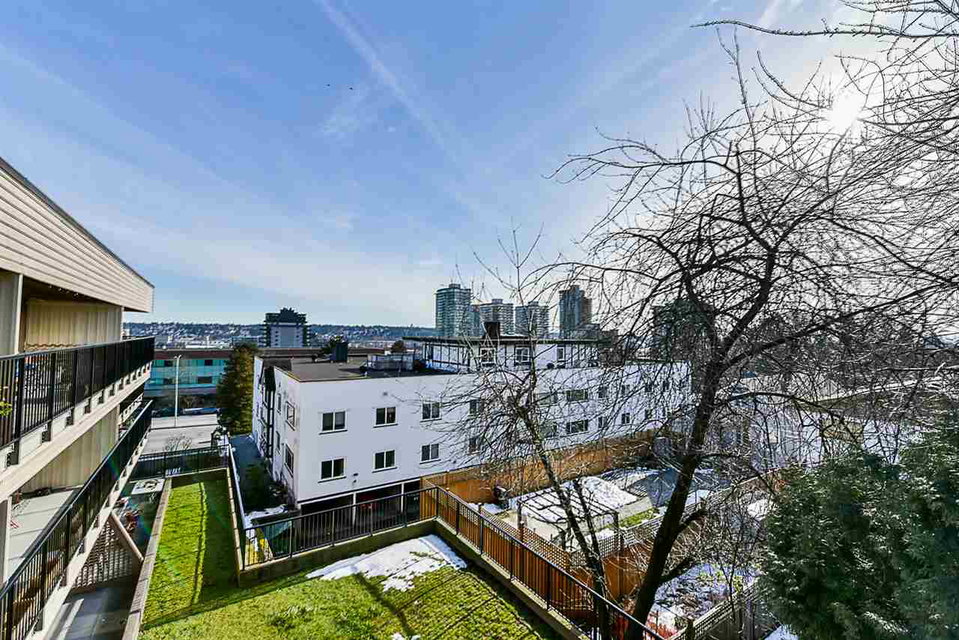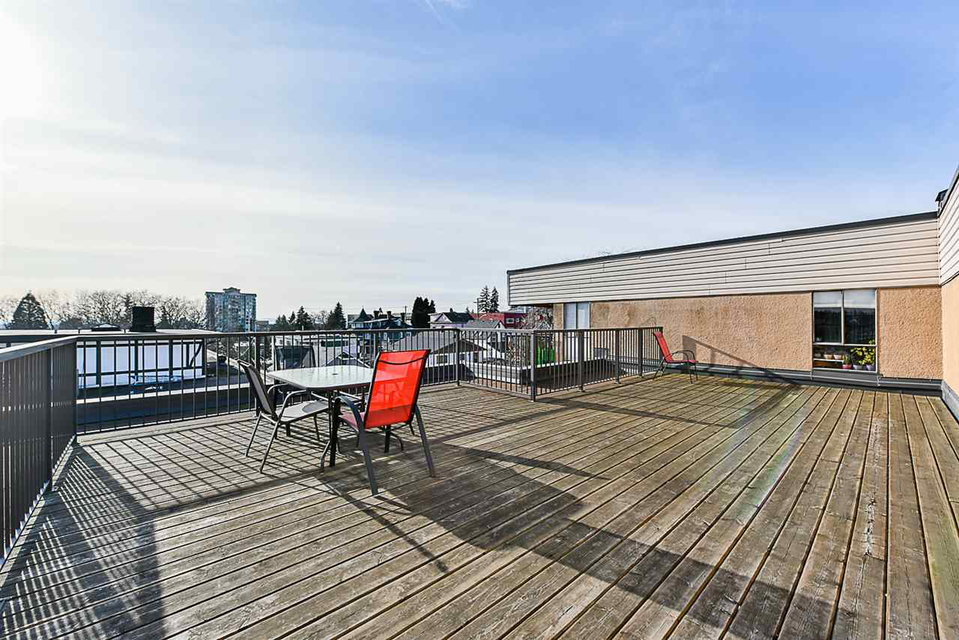 This condo offers beautiful updates including new laminate flooring, lighting fixtures, kitchen backsplash, bathroom vanity & fixtures. Located on the border of Downtown New West at VISTA ROYALE, steps from the Skytrain, Douglas College. This home offers new LARGE PRIVATE & QUIET deck – perfect for watching the sunsets. Could be converted into in-suite laundry. Building has been recently renovated with a new roof, hallway carpeting, boiler & hot water tank, new sliding doors, windows, railings, decks & has been Re-Piped. PET FRIENDLY building allows 2 pets. Includes 1 parking + 1 storage locker outside your suite. BONUS: Large storage closet in unit. Common room + Bike room for owners to use.