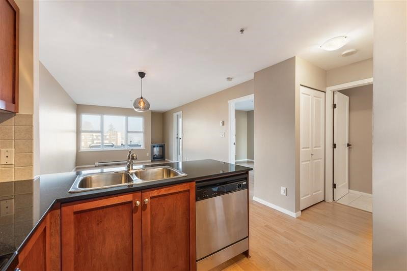 Move-in-ready 1-bedroom home in the San Marino, a mid-rise concrete building on a quiet tree-lined street. This exceptionally clean unit features fresh paint, new vanity, updated doors and hardware. The open-concept living/dining area flows into the kitchen with quality cabinetry, ample storage, full-size stainless steel appliances, and granite countertops. Enjoy a covered patio with mountain views and a quiet rear-facing outlook, set away from street and parking noise. Complete with in-suite laundry, 1 parking, and 1 locker. Steps to Sapperton SkyTrain, RCH, Brewery District, shops, dining, and Hwy 1. A highly livable home, all under $500k. Come and see this one in person! OPEN HOUSE Sat Feb 7th – 2:00pm to 4:00pm