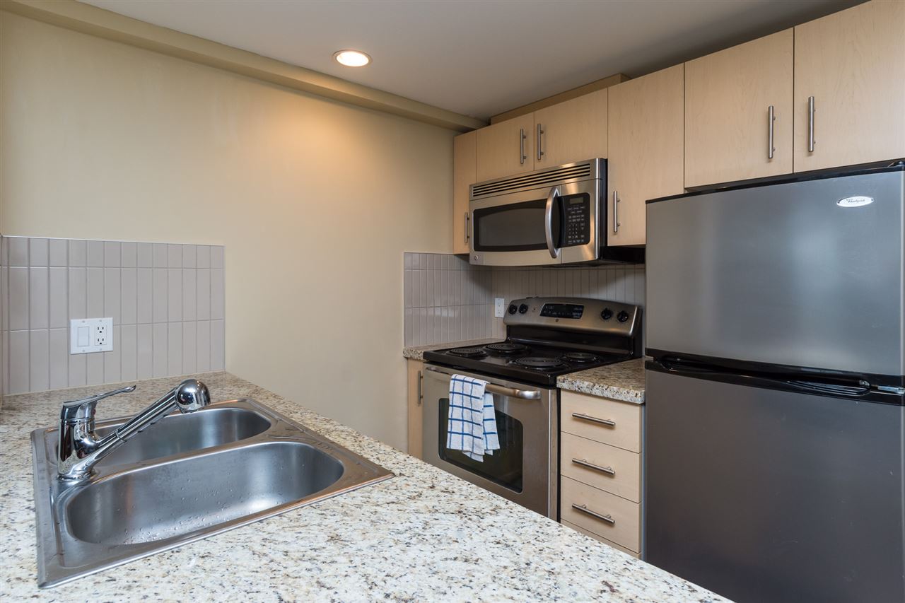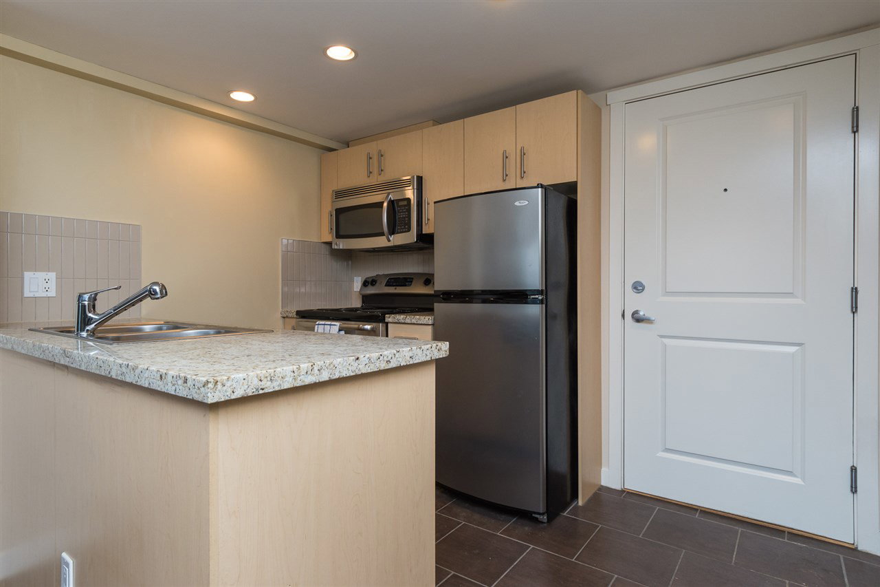 You can’t miss this adorable junior one bedroom in the heart of historic Sapperton-Brewery District. Laminate flooring in living and dining areas. Well designed kitchen features dark cabinetry, granite counters and stainless steel appliances. In suite laundry, electric fireplace. TWO PETS ALLOWED. RENTALS ALLOWED. Lovely cityscape view from living room and balcony. All this within minutes to skytrain station, transit, Royal Columbian Hospital and shopping. Concrete and steel construction. One parking.