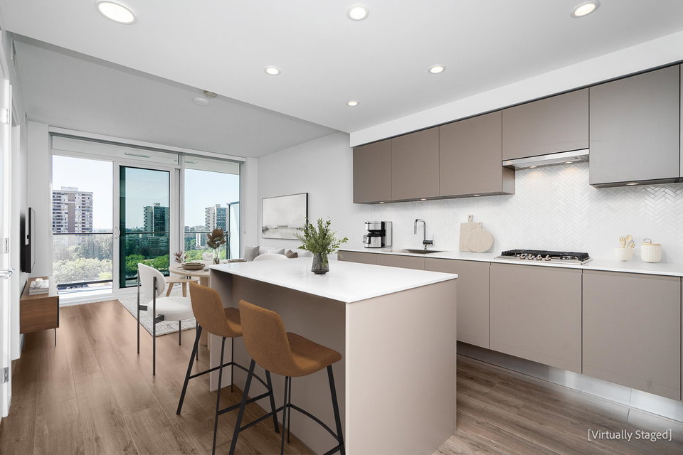 LIVE WORK PLAY at the City of Lougheed! Just Steps to Lougheed Mall, Price Smart, Restaurants, Shops & 3 Skytrain Lines. Master Plan Community by Reputable Developer SHAPE. Come Experience this Gorgeous, Just Like New, Super Quiet, Bright & Spacious One Bdrm w/ Amazing Unobstructed Expansive Views of the City & Mountain! With No Towers or Obstructions Blocking the Views. Excellent Open Floor Plan, No Waste of Space, w/ Almost 9’ft Ceiling & Beautiful Laminate Flr Thru-Out, STUNNING Euro Kitchen w/ Integrated Bosch Appls, Gas Cooktop, Quartz Countertops & Centre Island. Huge Balcony, Perfect for BBQ or Relaxing. Bdrm w/Walk Thru Closets & Full Ensuite, Built-in A/C to Enjoy Anytime, Full Size Laundry, 1 Parking & Locker. THIS HOME HAS UNIQUE ACCESS TO 7 ELEVATORS! OPEN HOUSE SAT CANCELLED