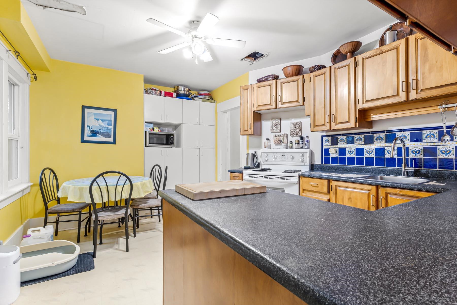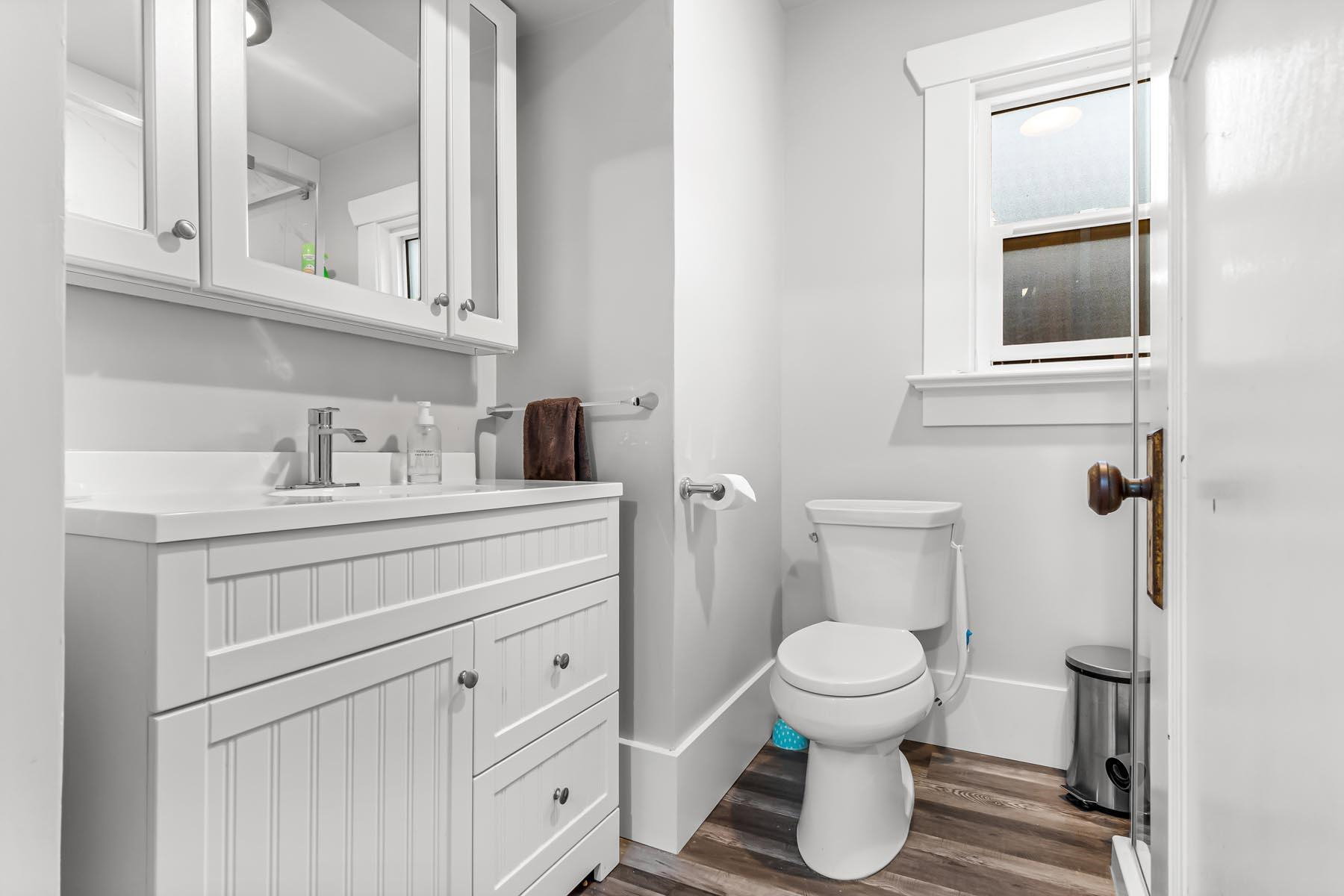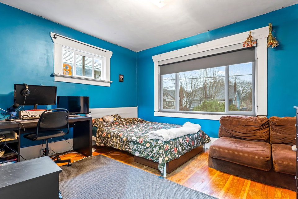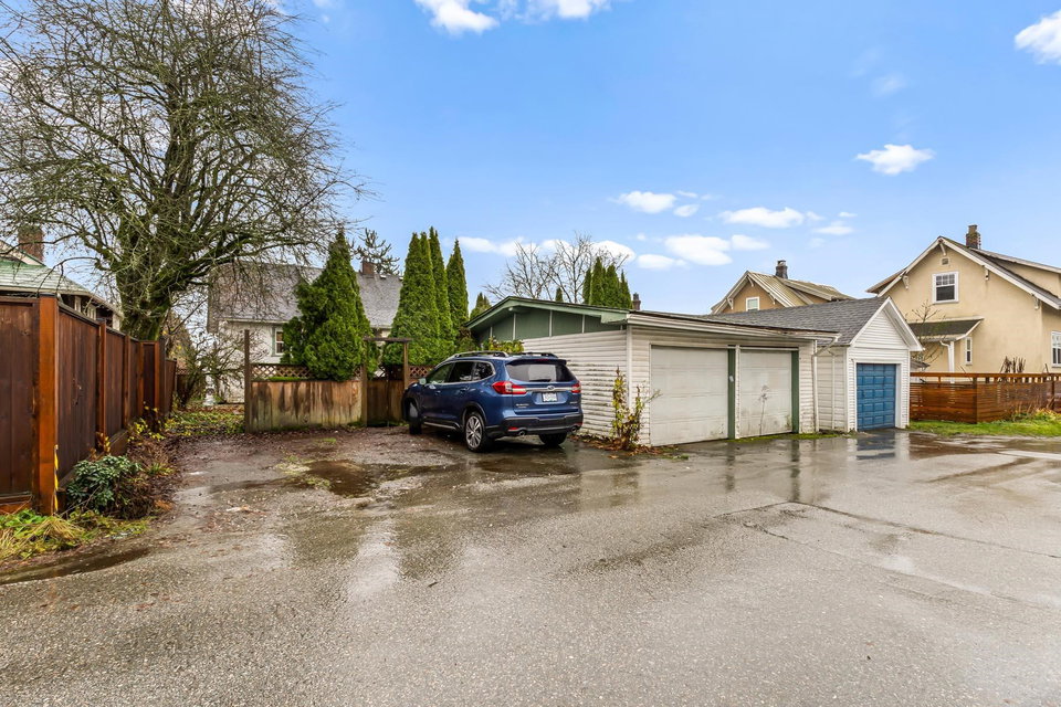 5 bedrooms, 3 bathrooms, over 2600 sq ft of total interior space in the Moody Park neighborhood. Detached double garage + 2 additional parking spots. Lane access, huge backyard. 6,435 sq ft lot. 49.5 ft wide x 130 ft deep. 2 bedrooms on the main floor, 2 bedrooms up and 1 bedroom down. Large kitchen with 10′ x 5′ pantry. Spacious dining area with French doors and living room with gas fireplace. Hardwood floors throughout most of the house. Huge rec room in the basement. Hot water on demand & furnace installed in 2018. This is an amazing location on a quiet street in a desirable area. Quick walk to New Westminster Secondary & Lord Kelvin Elementary, Moody Park, outdoor pool, fields, tennis courts, playground, dog park, Moody Park arena & Uptown.