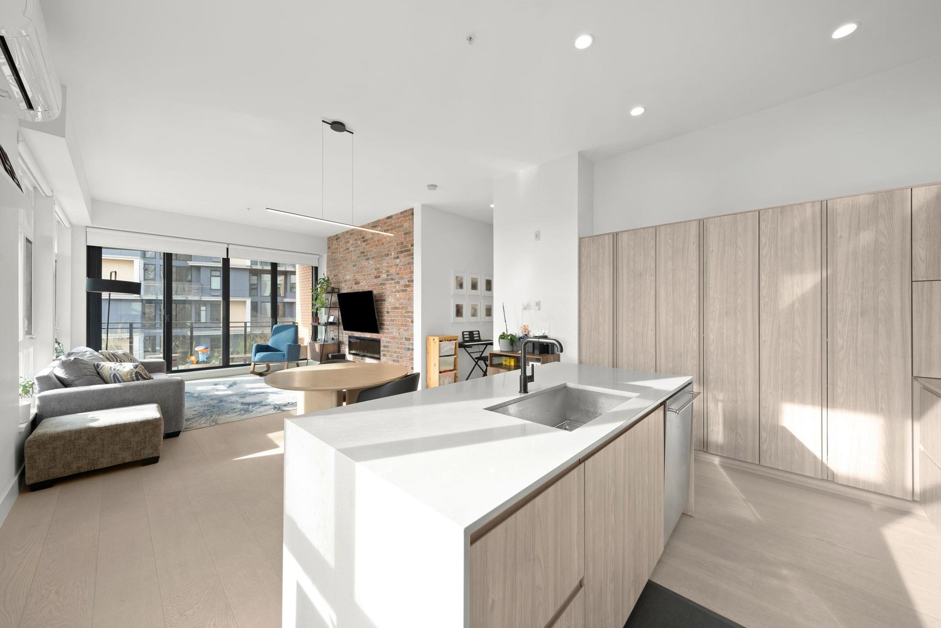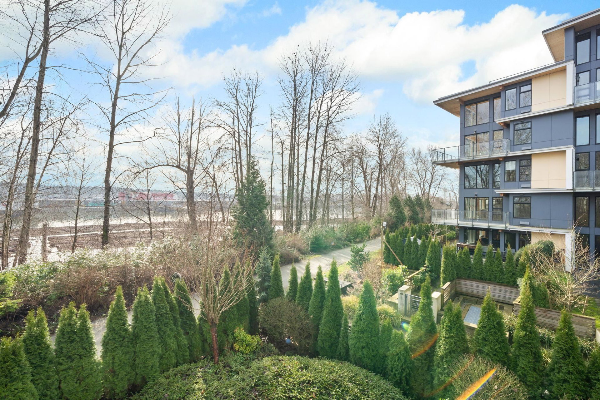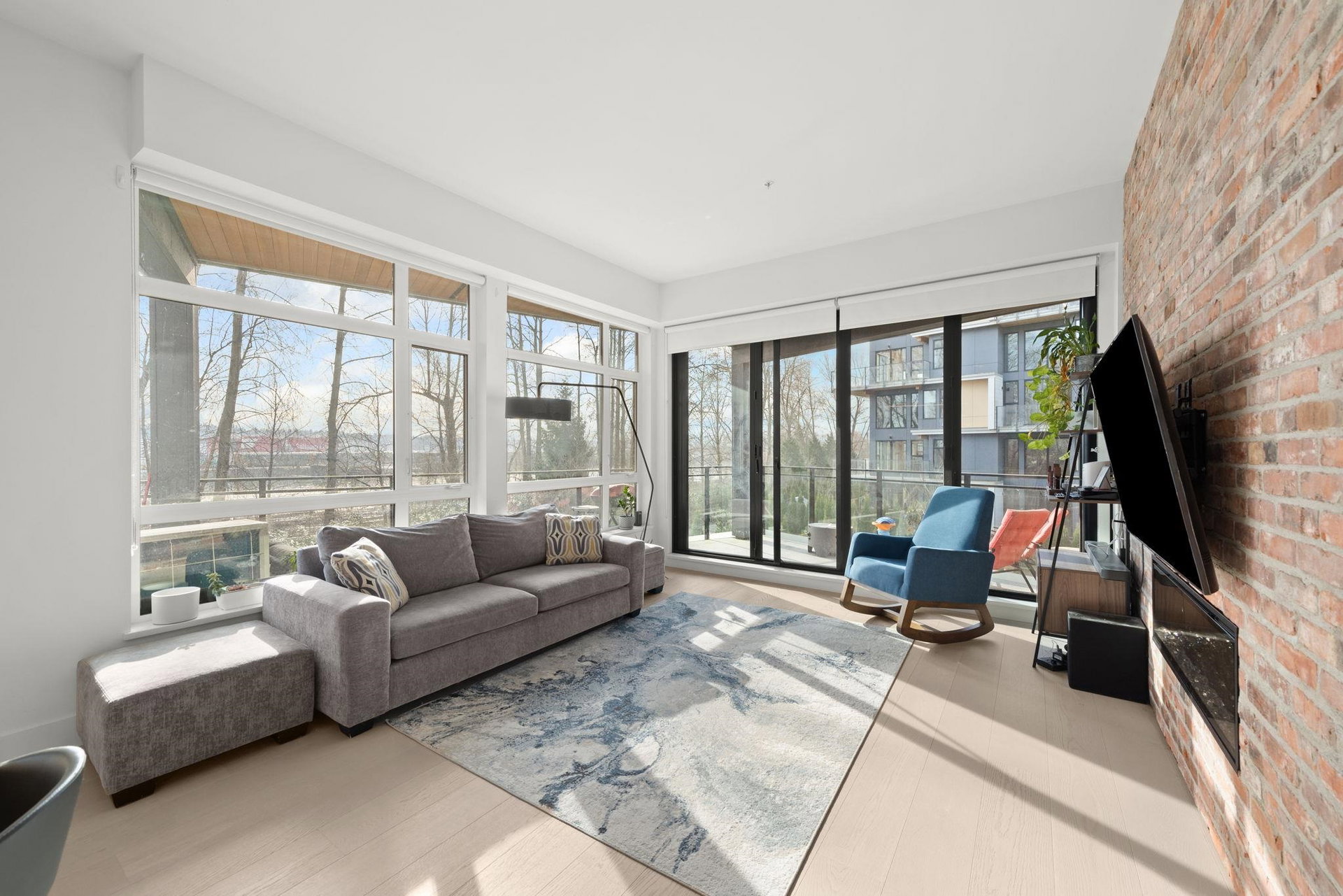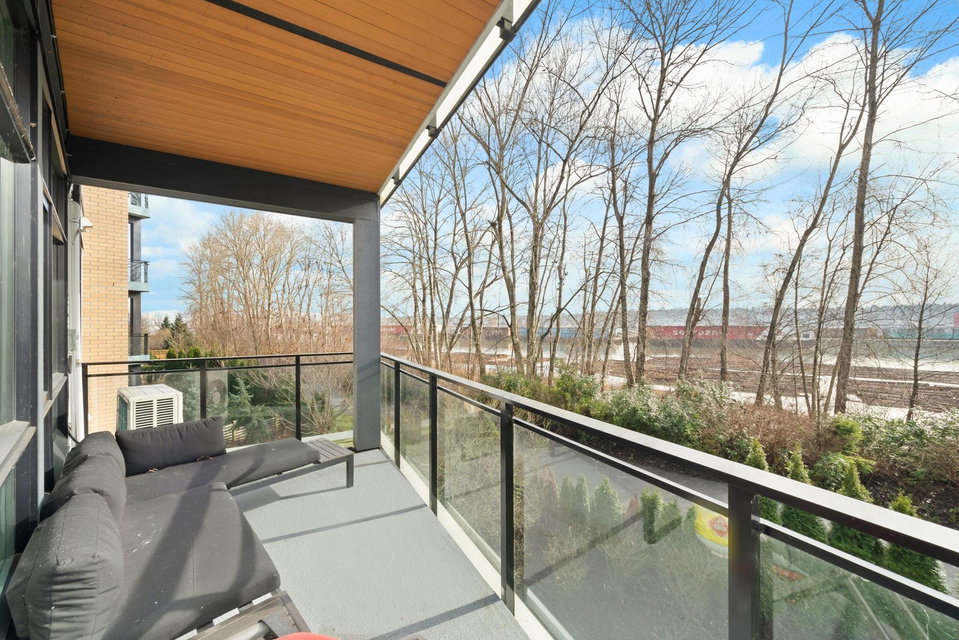 YOUR NEW HOME AWAITS! Welcome to The Light House in Port Royal. This expansive corner, 2 bedroom home features the best that Queensborough has to offer including over 1200 sq ft of AIR CONDITIONED interior space, south facing river views, over height ceilings throughout and extended storage options for your growing family. Sun drenched with natural light, hardwood flooring and a reclaimed brick feature wall showcase details you wont find anywhere else! Sliding accordion style patio doors allow for seamless entertainment options that are sure to please! Top class amenities, pets allowed, steps to waterfront trails and park space. 3 mins to Queensborough Landing Mall! BONUS 2 PARKING STALLS INCLUDED! DONT MISS THIS ONE! OPEN HOUSE SATURDAY MARCH 7, 2-4PM